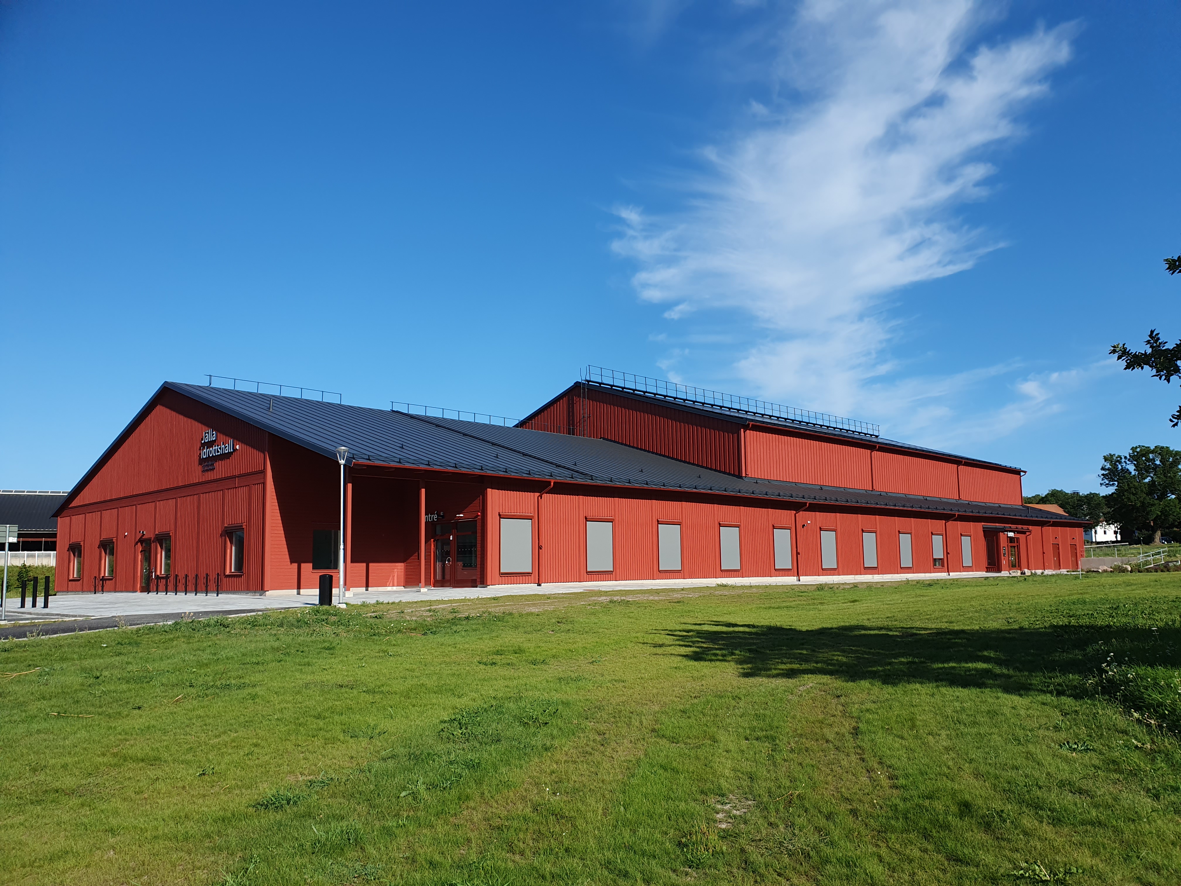 Spadtag i bygget togs i oktober 2022 och nu står den röda idrottshallen klar för verksamhet. Utöver själva byggnaden har fastighetens kringliggande utemiljö anpassats, parkeringsplats anlagts och en ny kulvert konstruerats, vilken förser både idrottshallen och fyra omgivande fastigheter med värme.