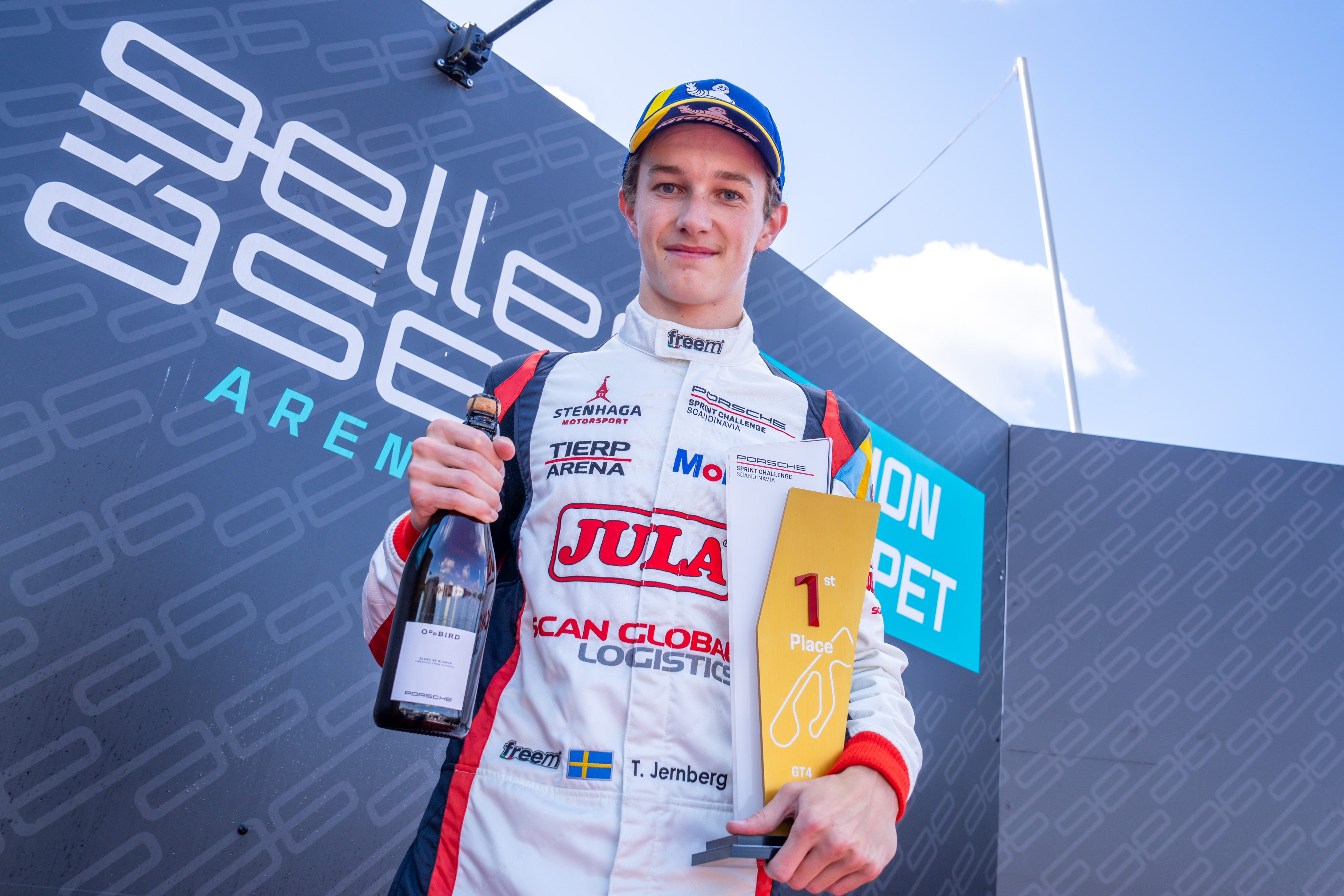 I supportklassen Porsche Sprint Challenge Scandinavia befäste Theo Jernberg sin ledning totalt med två nya segrar i mästerskapets GT4-kategori. Racesegrarna delade emellertid en GT3-duo på, teamkompisarna i Fragus Motorsport, Wilmer Wallenstam och Isabell Rustad.