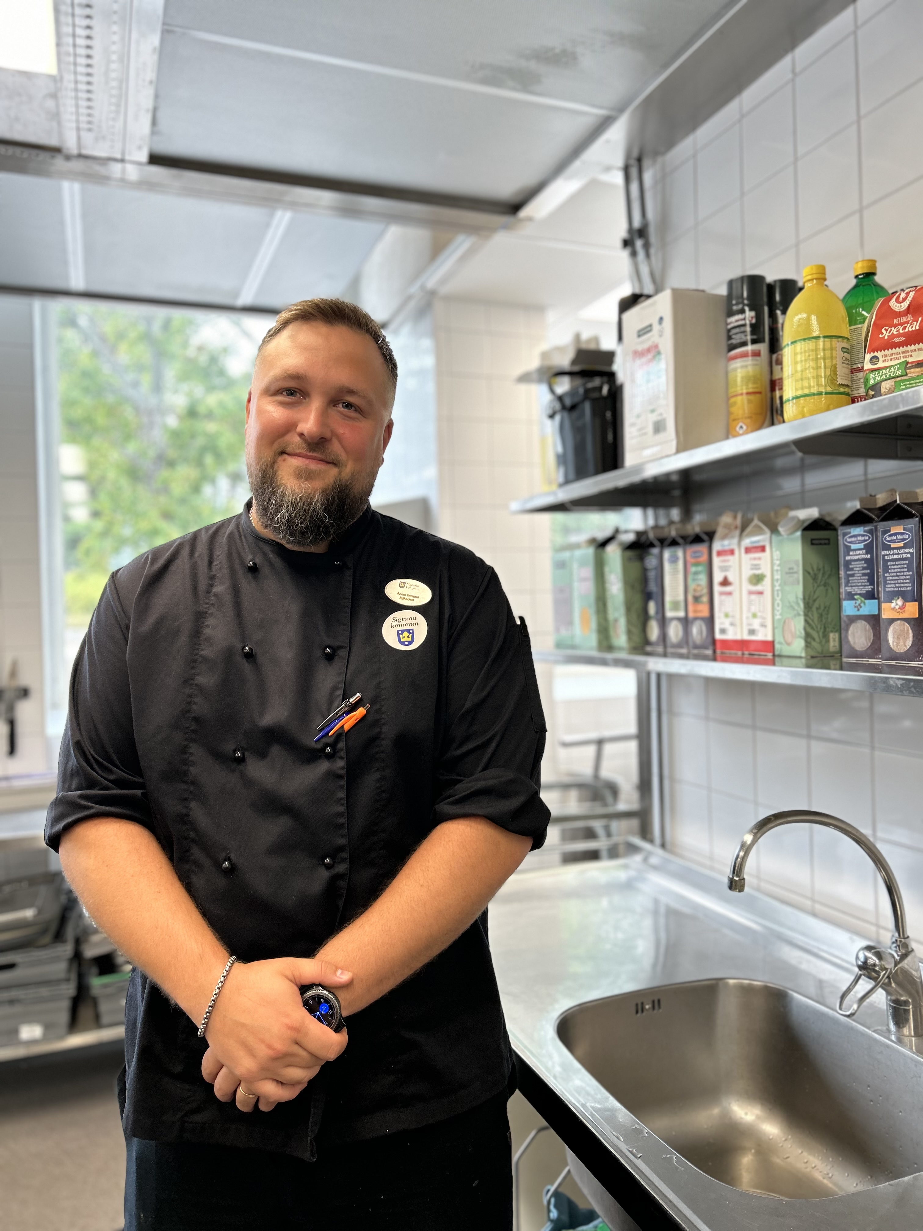 Kökschef Adam Brolund har tidigare jobbat på både lyxkrogar och större restaurangkedjor och tycker att offentliga måltider är väl så utmanande. I oktober ska han tävla i finalen av Sveriges Offentliga Måltider, där han är nominerad i kategorin ”Årets seniorkock”.