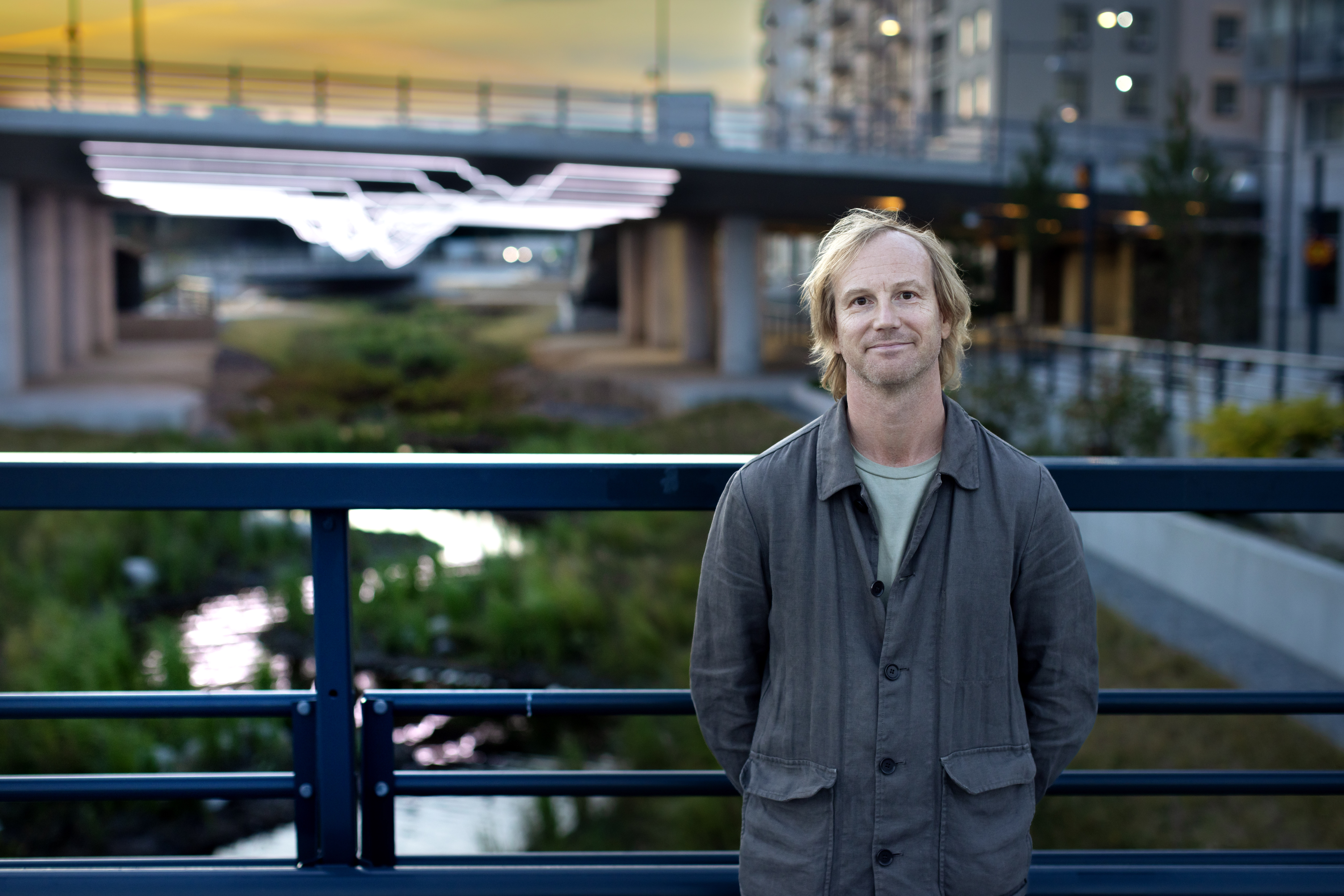– Jag vill att Light Flow ska kunna associera till platsens komplexitet, till både tid och rum, arkitektur, liv, ljus, flöde och magi. De lysande linjerna kan referera till åns dolda topografi, till en rytm, ett flöde och till vattenrörelser som strömmar fram, samtidigt som konstverket innebär en direkt och konkret rumslig gestaltning som blir påtaglig för alla och bidrar till att skapa både trygghet, identitet och atmosfär, säger konstnären David Svensson.