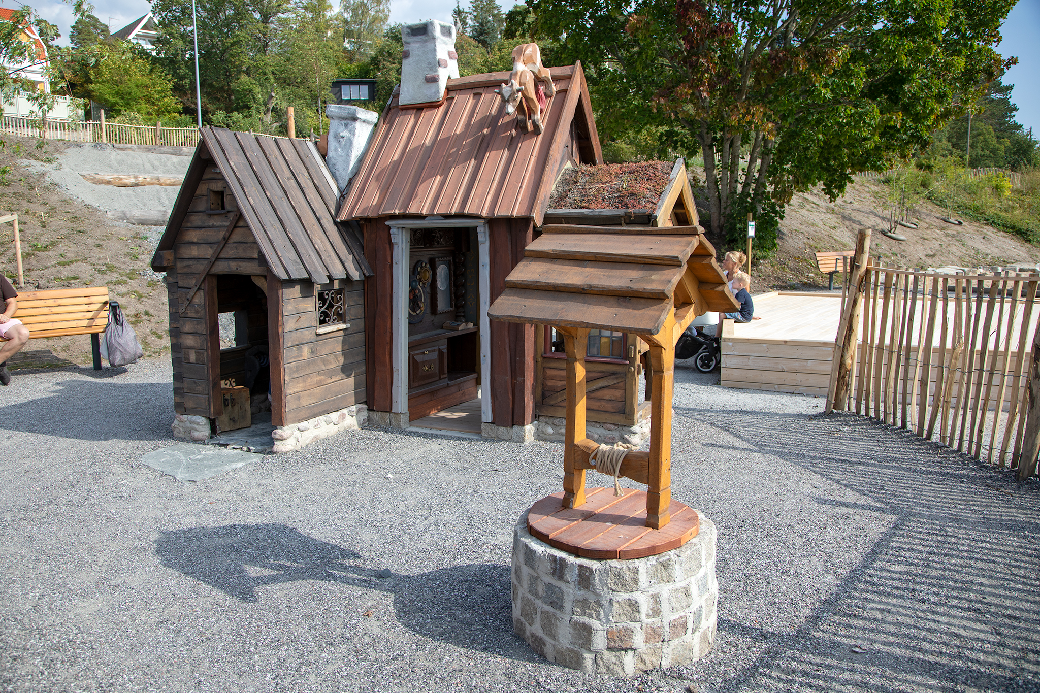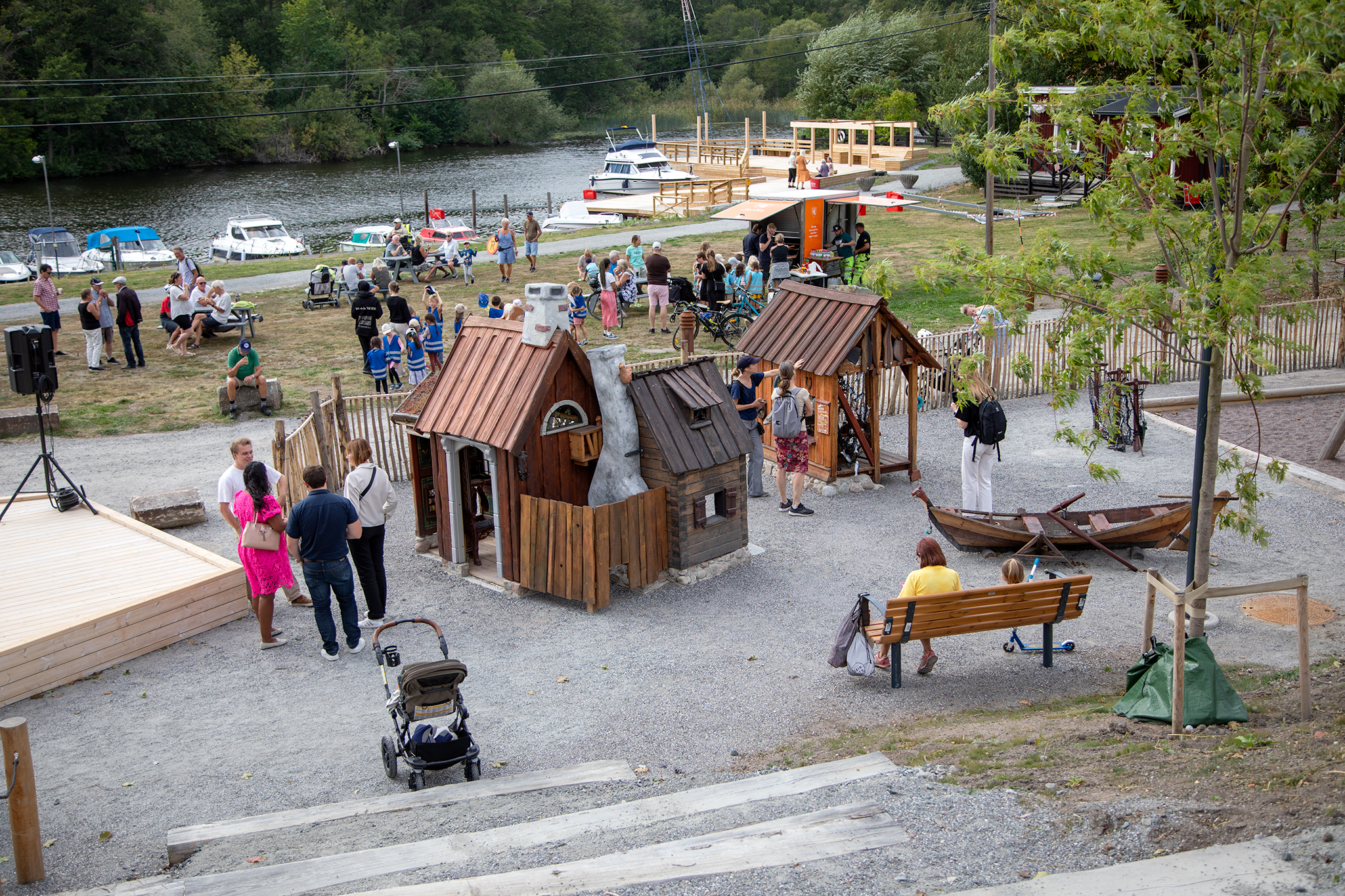 Temalekplatsen kan aktivera fantasin genom många olika inslag. Dressinen, hantverkshuset och fiskaffären är prydda med omsorgsfulla detaljer som skapar en känsla av en annan tidsepok. Det finns även en rolig uppdragsslinga, en stor rutschkana och gungor.