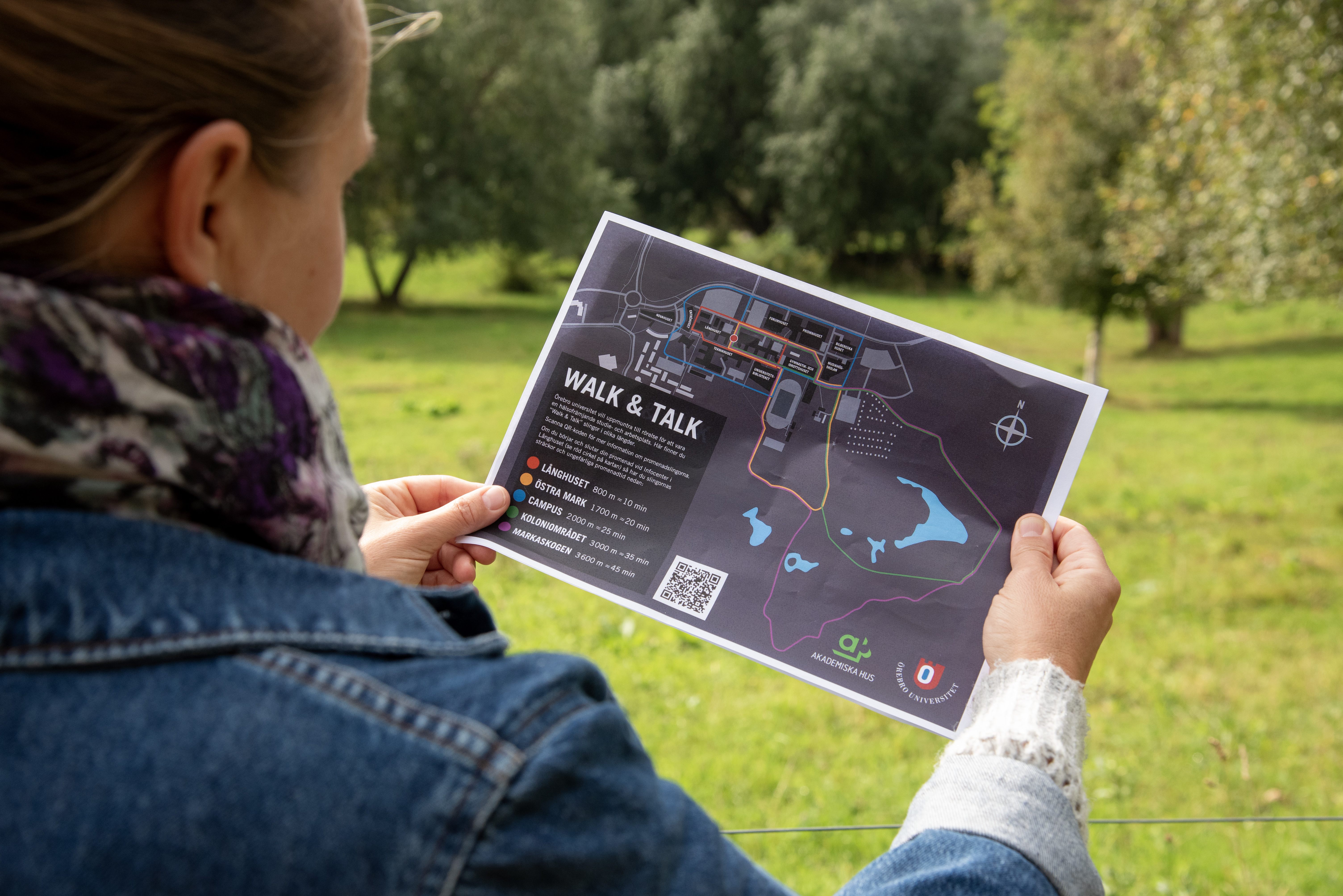 Nu finns alltså en ny karta för Walk and talk, eller gåmöten på svenska. Den ska göra det lättare för fler att då och då välja promenad i stället för sammanträdesrum. Inte minst ska det bli lätt att hitta i närområdet för de tusentals personer som varje år kommer som nya studenter eller anställda till campus i Örebro.