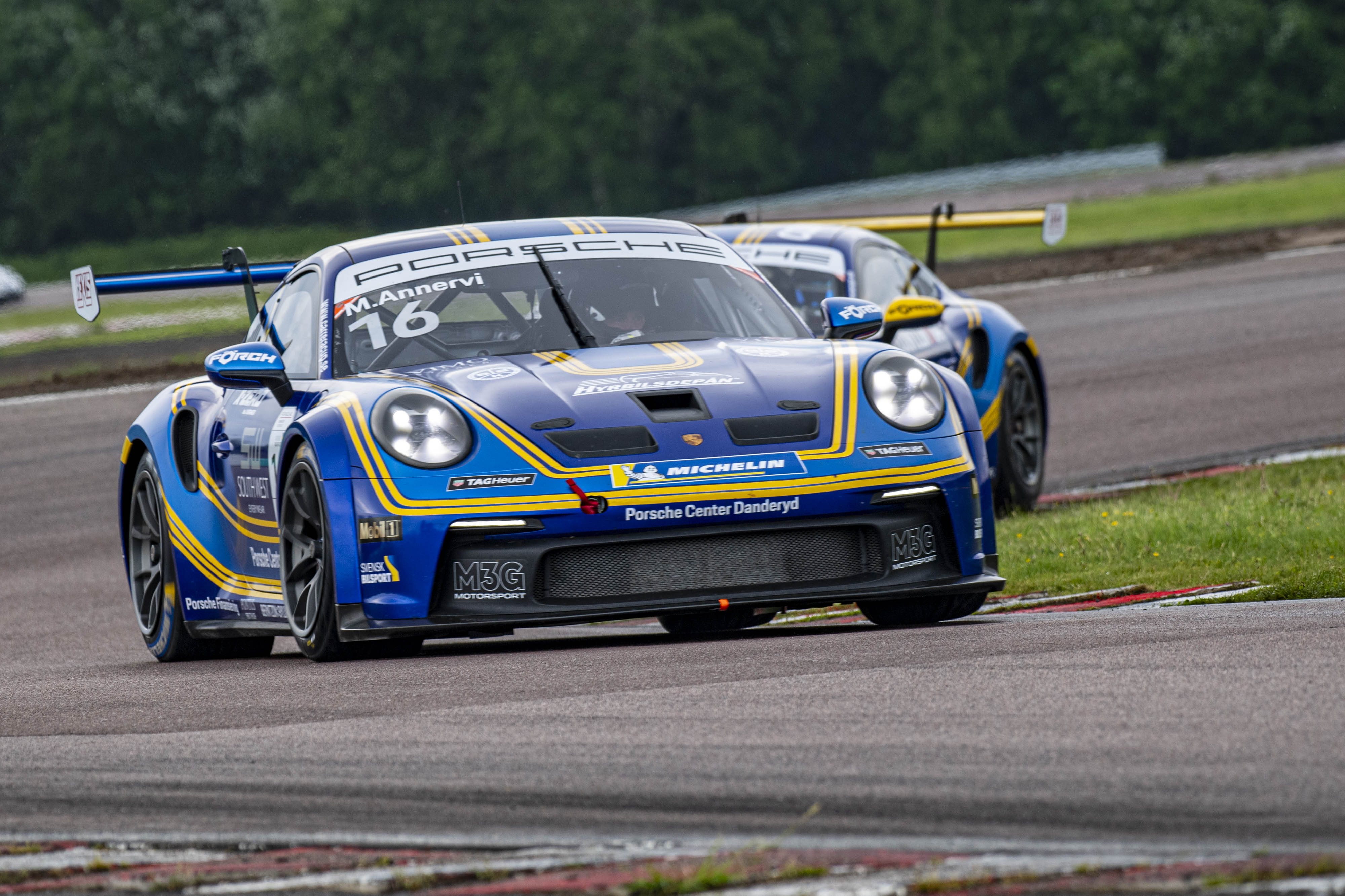 Norskt blir det även i supportklassen Porsche Sprint Challenge. Där får mästerskapsfyran, och tvåan i GT3-kategorin, Isabell Rustad, nämligen tillfälligt sällskap av landsmännen Ole William Nærsnes och Eivind Lie. Nærsnes vann ett race på Rudskogen in ett inhopp förra året. Lie, som blev norsk GT3-mästare förra helgen, debuterar i mästerskapet, som toppas överlägset av Theo Jernberg från Mariefred.