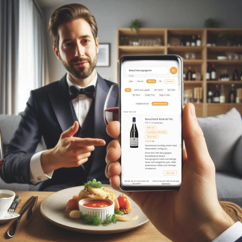 Hitta den perfekta drycken till din middag med hjälp av vår AI-Sommelier! En proffs-sommelier i mobilen.