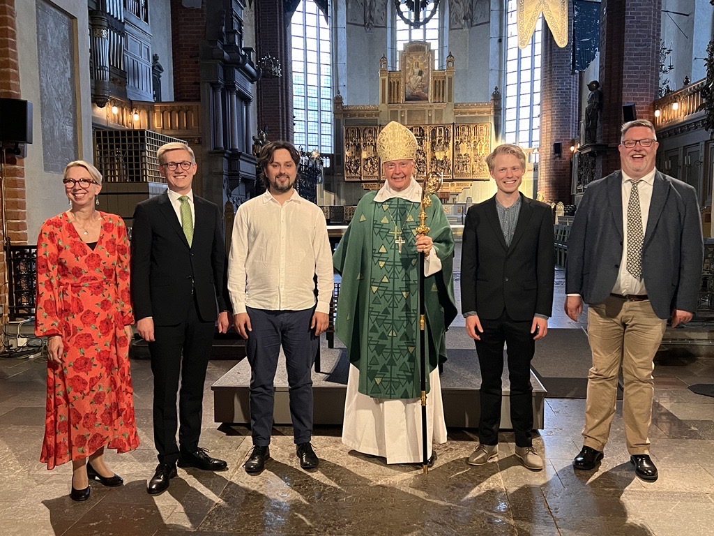 Biskop Johan välkomnade tre kyrkomusiker vid en sändningsgudstjänst i Strängnäs domkyrka torsdagen den 12 september.