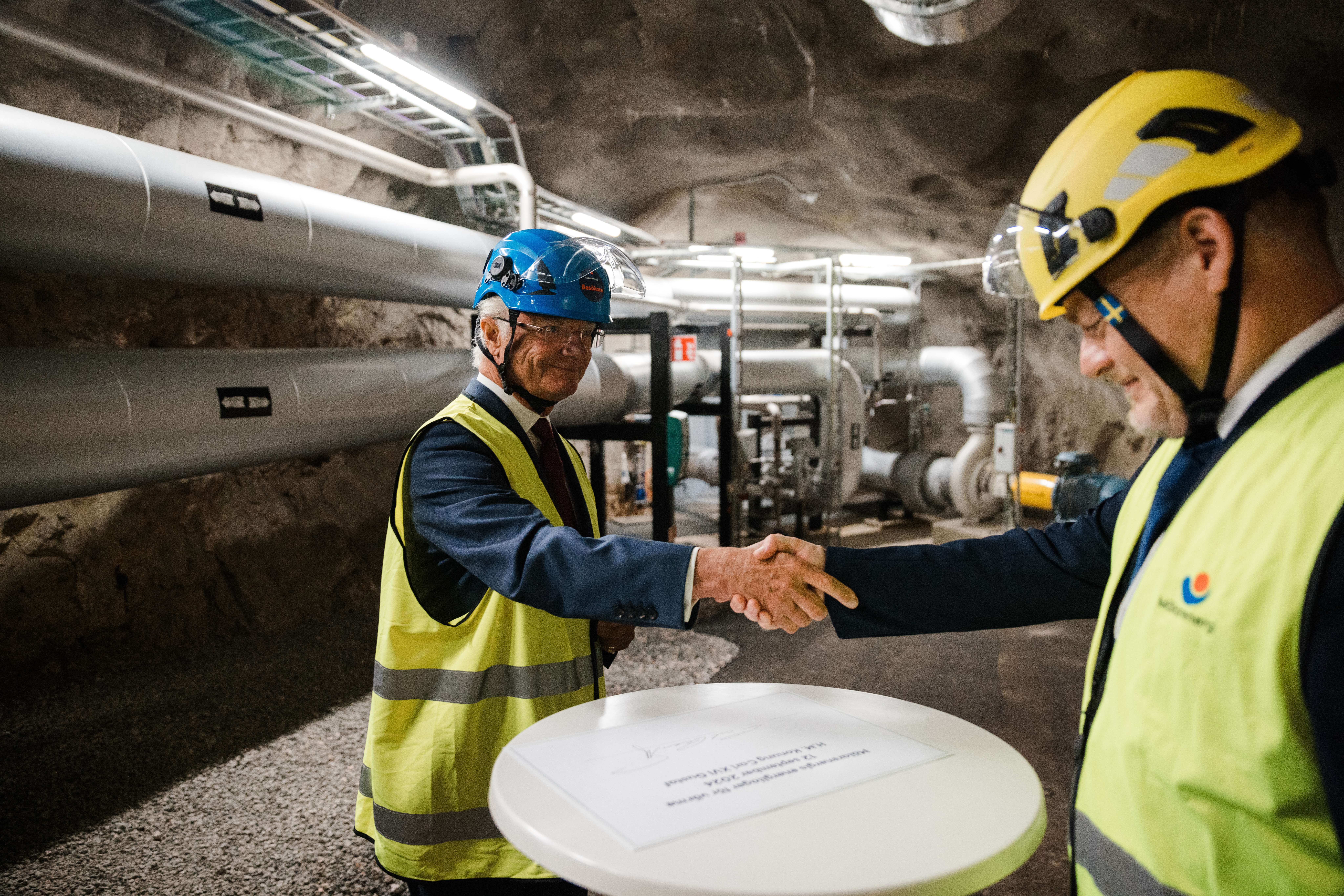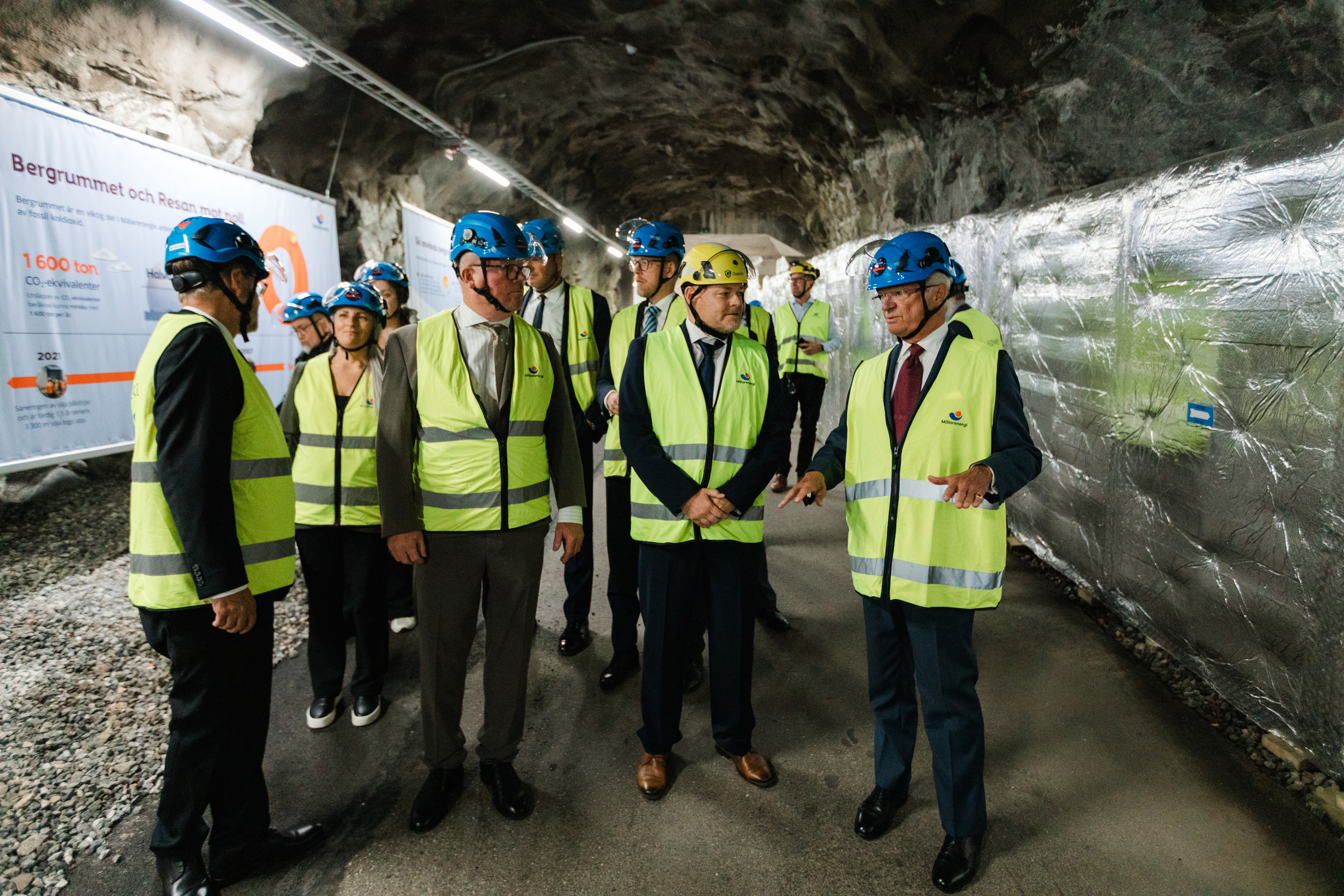 Efter invigningsceremoni och bandklippning tog han på sig hjälm och varselväst och vandrade ner i underjorden, till det som kallats ”världens största termos”. Djupt nere under mark ställde kungen många nyfikna frågor av teknisk karaktär till dagens guide, Mälarenergis vice vd Magnus Eriksson.