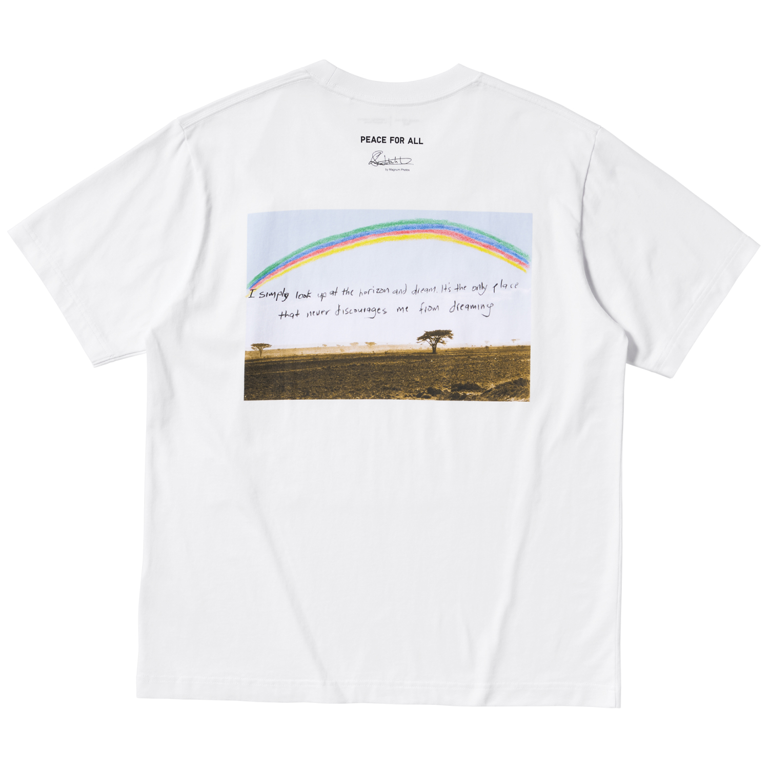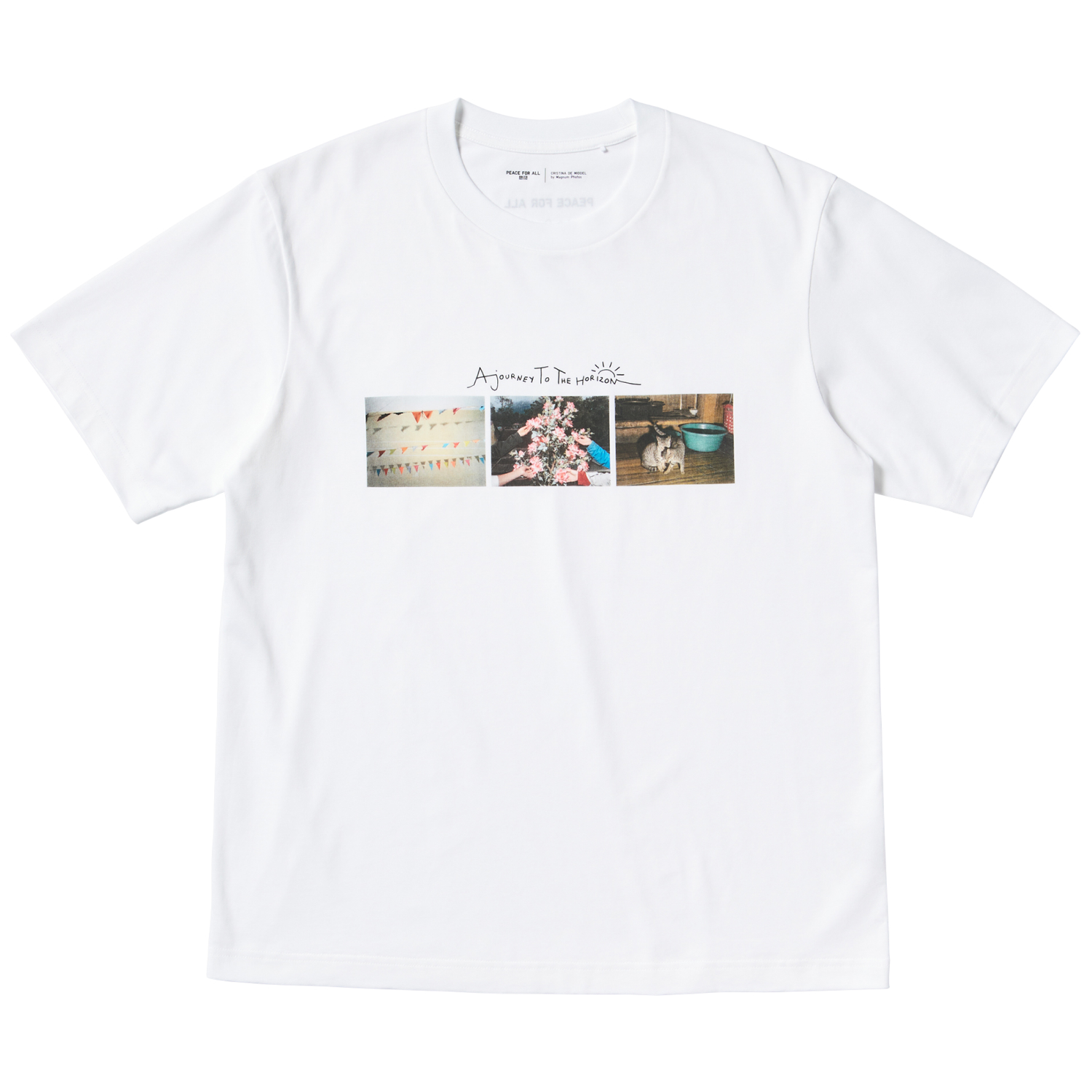 Genom initiativet PEACE FOR ALL har UNIQLO sedan 2022 lanserat T-shirts av välkända designers, konstnärer och fotografer där 100 % av vinsten från försäljningen går direkt till Plan International, UNHCR och Rädda Barnen. I samband med fotoutställningen kommer tre nya T-shirtar att säljas i UNIQLO:s butiker och på uniqlo.com med start den 19 september. Varje T-shirt pryds med bilder som skildrar ögonblick från de resor runt om i Vietnam, Rumänien och Etiopien som fotograferna på Magnum Photos gjort.