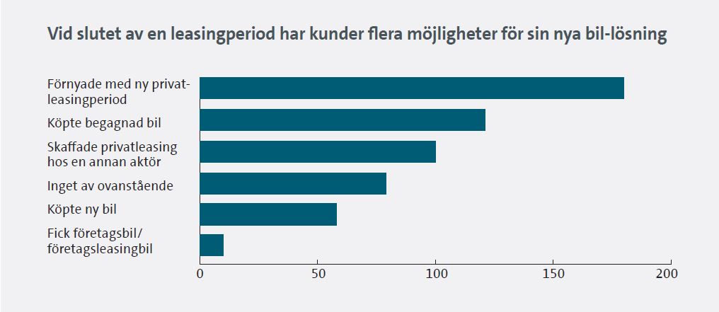 44 procent av hushållen som skaffar en ny bil väljer att finansiera den genom privatleasing. 28 procent väljer istället billån via ett finansbolag. Knappt var tredje privat bilköpare finansierar bilen på egen hand, exempelvis med sparade pengar eller att låna på annan säkerhet än bilen.