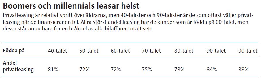 Boomers och millennials är de generationer som oftast väljer privatleasing.