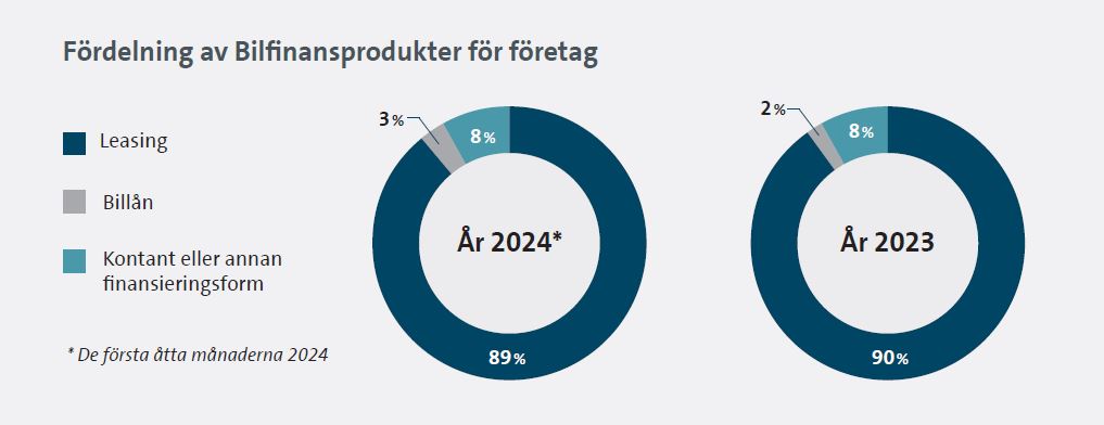 Antalet nya privatleasade bilar i Sverige steg med 25 procent under 2025 jämfört med 2024. Tillväxten för privatleasing var kraftig med tanke på att hela bilmarknaden i Sverige utvecklades svagt 2025 med en tillväxt på enbart 1,3 procent. Andelen laddbart var 59% av nya bilar på privatmarknaden för bilfinansiering, vilket är en rekordhög nivå för husållen. Även företagen är på sin högsta andel laddbarat och står för 90 procent av de företagsleasade nya personbilarna.
