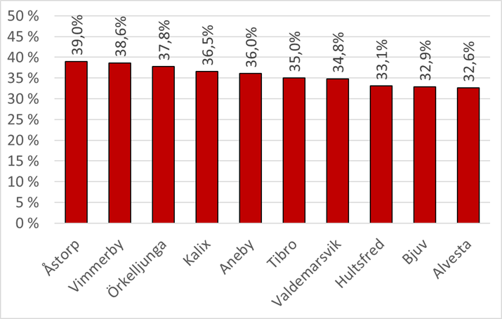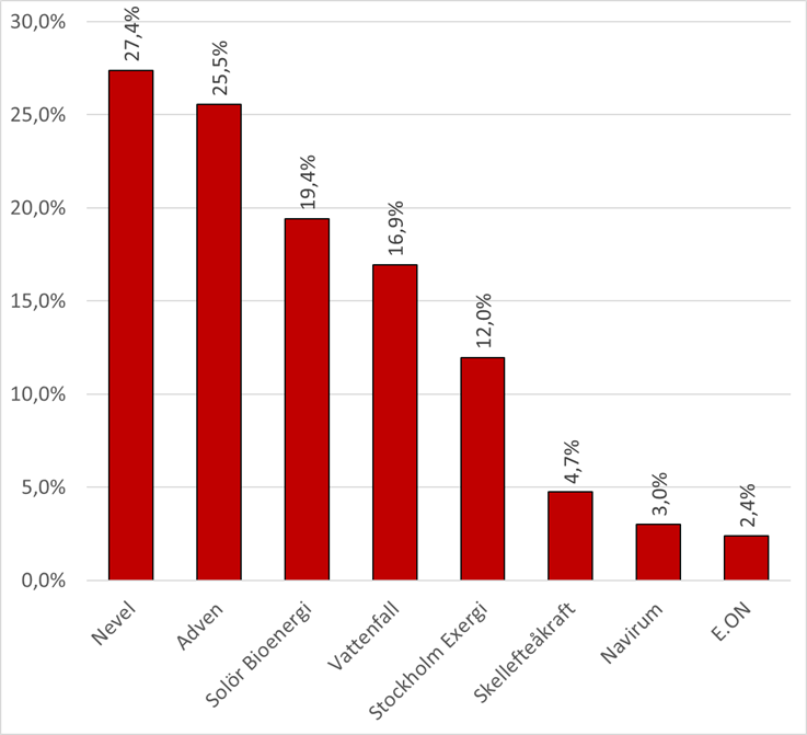 Högst höjning i procent står Nevel Energi i Åstorp för, de höjer priset med 39 procent tätt följt av Vimmerby energi & miljö med 38,6 procent och Örkelljunga Fjärrvärmeverk som höjer fjärrvärmepriset med 37,8 procent. Dyrast kommun är fortsatt Nordanstig där man förra året sprängde 1 200 kr/MWh-gränsen men nu sprängt 1 500 kr/MWh-gränsen. Nordanstig följs av Kalix och Lessebo där priserna nu ökat till 1 463 respektive 1 447 kr/MWh. Vissa fjärrvärmebolag äger nät i många kommuner, det gör att deras prissättning får stor påverkan. Bland de bolag som äger nät i fler än fem kommuner är Nevel det bolag som höjer mest, med i snitt 27,4 procent, följt av Adven Sverige och Solör Bioenergi på 25,5 respektive 19,4 procent.