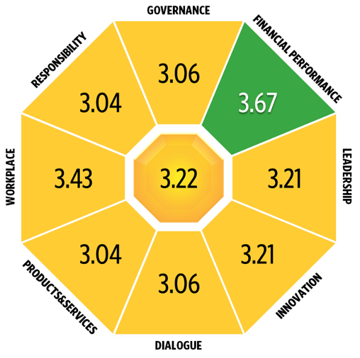 Undersökningsmodellen Reputation&Trust beräknar ett anseendebetyg för varje organisation på en skala från 1 till 5 baserat på åtta underliggande affärsdimensioner som avgör anseendet. I undersökningen utreddes 14 organisationers anseende hos allmänheten. Rankingen baseras på de anseendepoäng som den svenska allmänheten ger organisationerna.