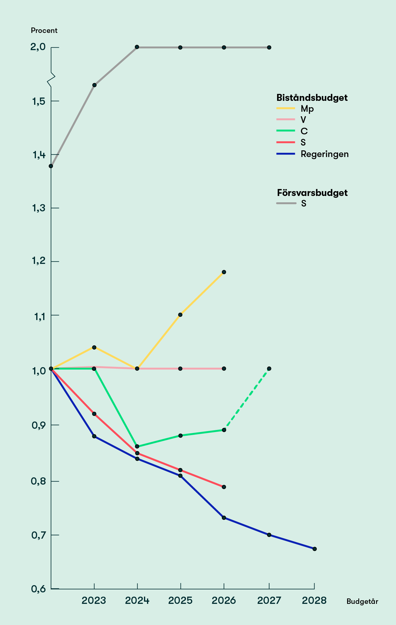 Sverige har i över 50 år stått bakom principen om att avsätta motsvarande en hundradel av våra inkomster i bistånd. Med den nya budgeten är risken stor att Sverige år 2028 kommer att hamna under FN:s och EU:s lägstanivå om att avsätta minst 0,7 procent av BNI till bistånd*. Det är stick i stäv med vad Kristdemokraterna och Liberalerna lovade väljarna före valet om att inte backa från principen om en procent.