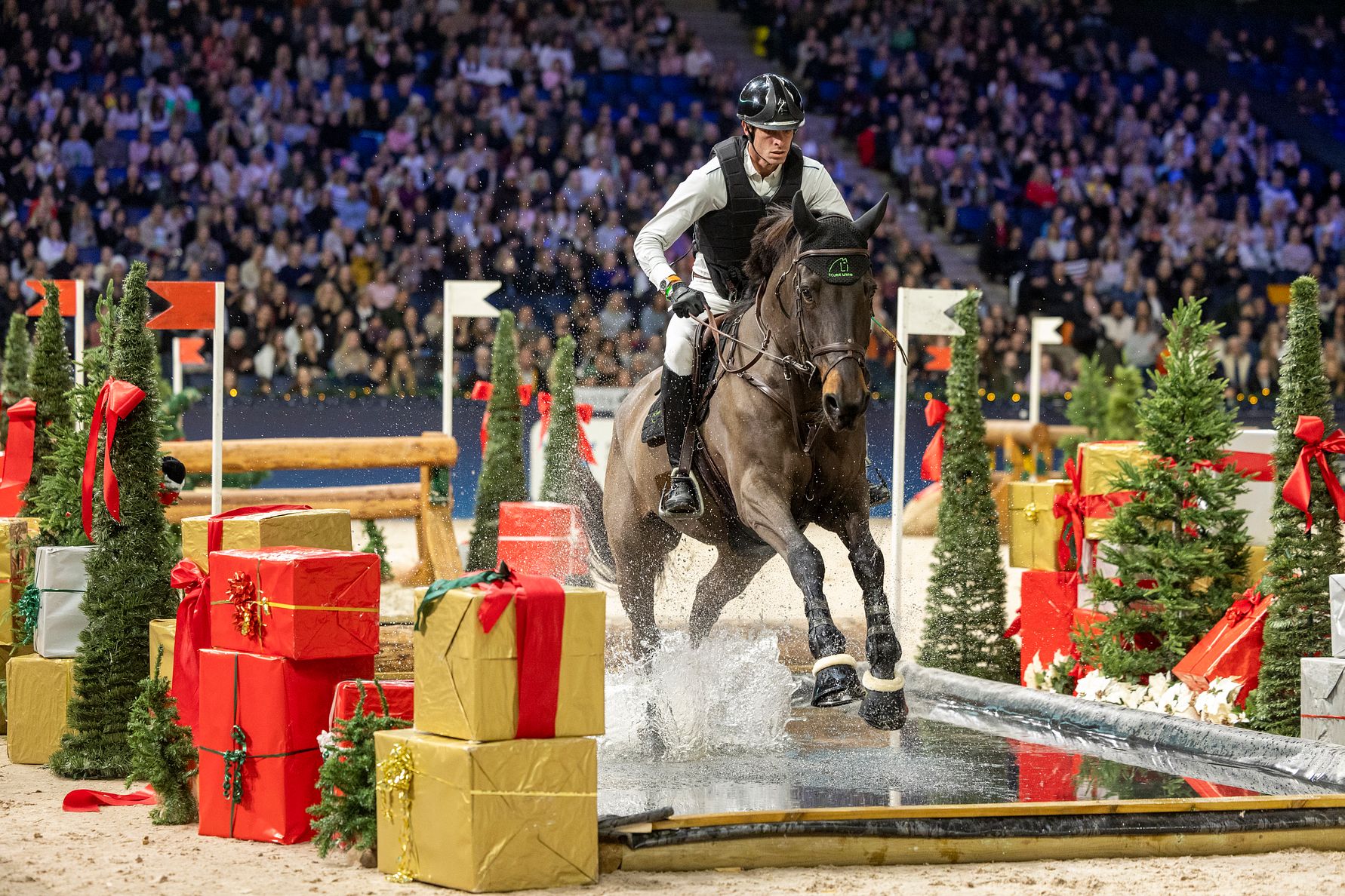 Cyril Gavrilovic from Belgium guided his good jumper Gatine de l'Aubree sensibly around the challenging course for a clear round, which was enough for second place as the Christmas-inspired jumps caused trouble for some of the other riders. Sweden’s Frida Andersén and Box Compris went for it and was really quick, but collected some expensive penalties. They ended up third in what was the mare’s very last competition as Box Compris is now set to go into breeding.