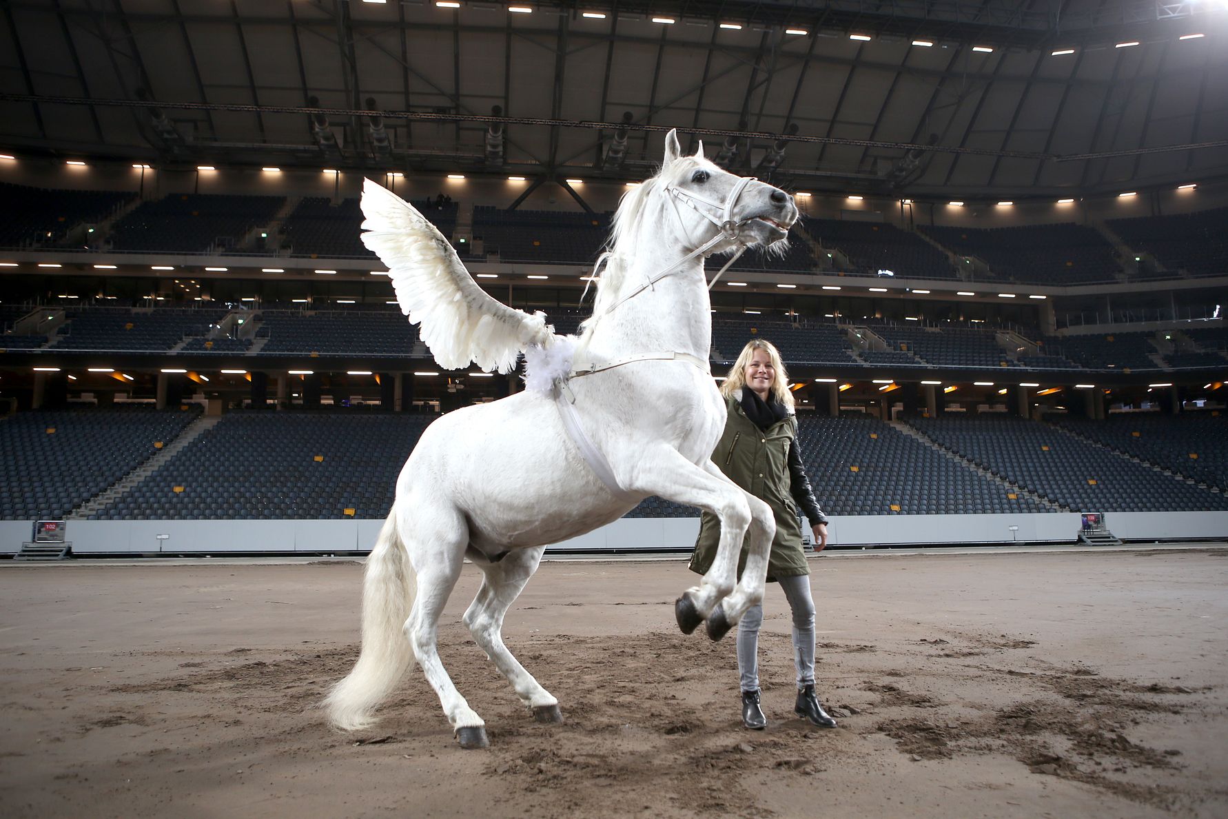 Malin Baryard Johnsson, tillsammans med Sweden InternationalHorse Shows signum, Pegasus testade Friends Arena på måndagen.- Arenan är magisk, helt otrolig, sa Malin och blickade upp mottaket. Tänk vilken ridyta.Deltagarlistorna inför Sweden International Horse Show börjar bli klara.Som sportchef bjuder Malin Baryard Johnsson in till den internationellahoppningen.