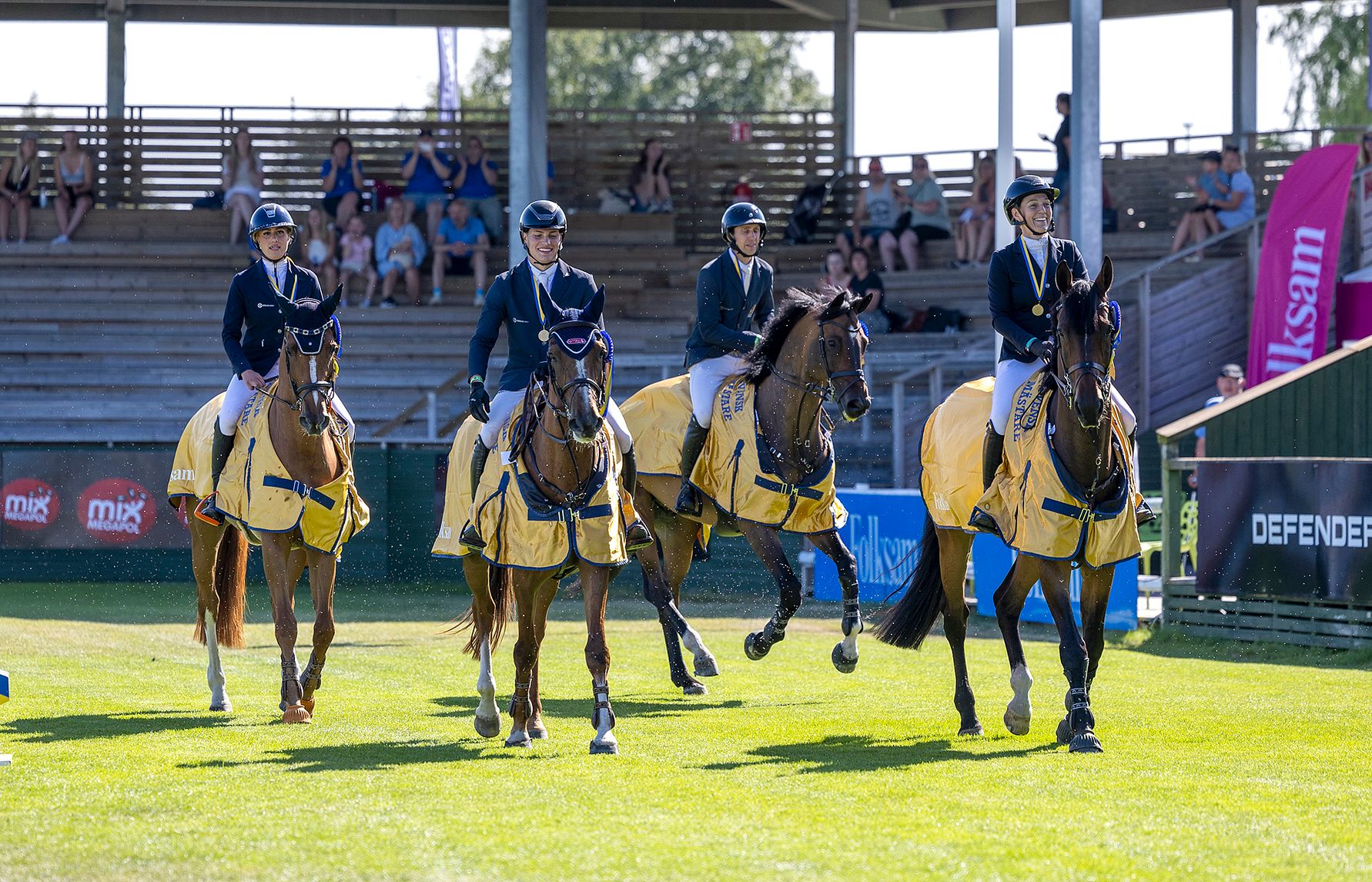 Folksam Elitallsvenska - faktaFolksam Elitallsvenska innebär SM i laghoppning. Lag ska bestå av tre eller fyra ekipage, varav de tre bästas resultat räknas. Lag med fyra ekipage ska innehålla minst en ryttare som är född 2003 eller senare. Lag med tre ryttare kan bestå av enbart äldre ryttare, födda 2002 eller tidigare.