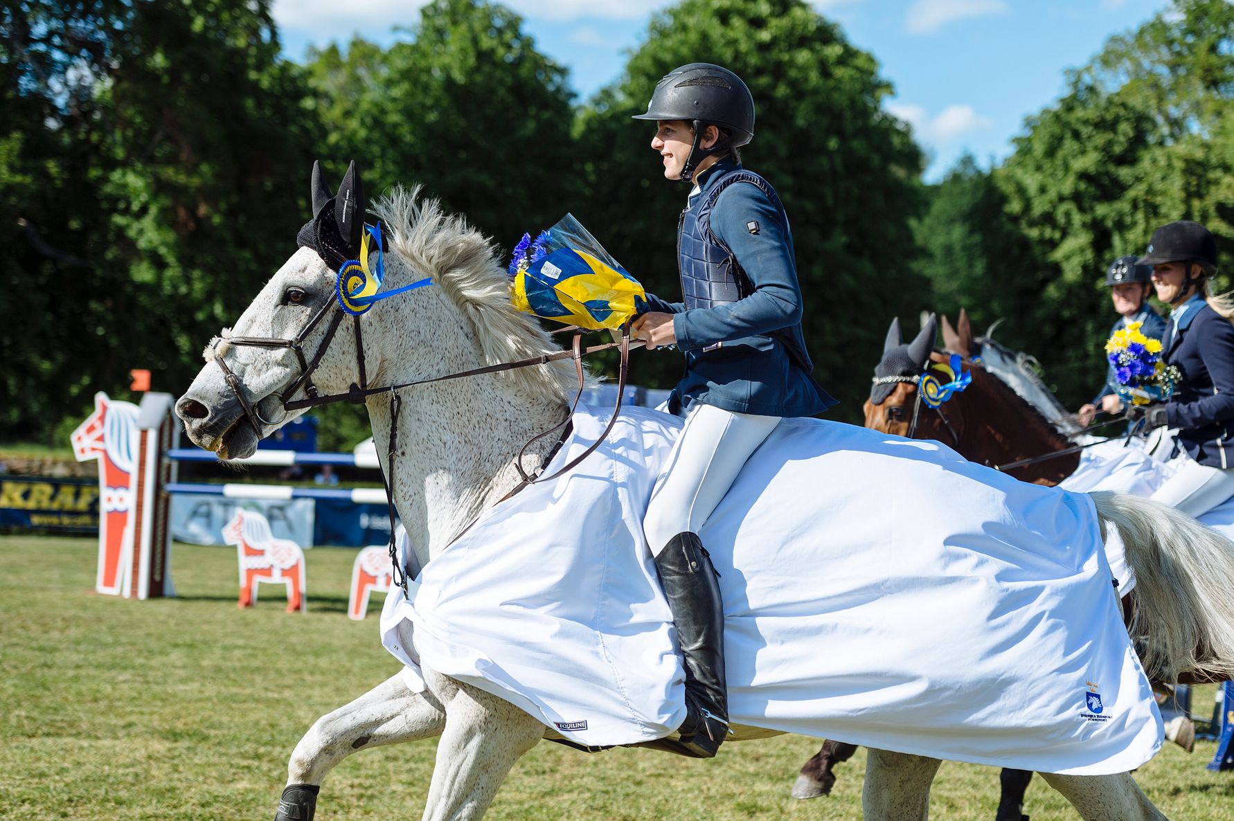 Nils förbereder sig på sitt sätt inför finalen. - Jag tränar en del för Linda Heed (som kommer att rida i laget). Jag åker ofta över till min granne här i Stallarholmen, Amanda (Gullström som red i laget under semifinalen). Det är kul att rida tillsammans, fortsätter Nils som stannat hemma under midsommarhelgen för att rida sina hästar.Övriga familjen firade midsommar i Skåne. Men Nils måste ta ansvar för sina hästar och har mormor som stöttar hemma på gården. Att han själv är tonårsgrabb och övriga trion i laget, Ulrika Karneus, Linda Heed och Marlene Lindblad, är vuxna spelar ingen som helst roll.- Det är rätt stort och det blir som en dröm att få rida finalen.