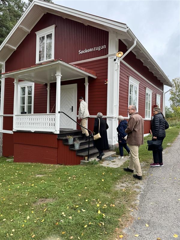Sockenstugan intill Järvsö kyrkan visades också upp för biskop Karin som ett exempel på pastoratets nytänkande kring hur deras många byggnader används på bästa sätt. Väl där inne erbjöds hon en golfklubba som senare lyckligtvis träffade en golfboll vilken dessvärre gick käpprätt åt ... Hawaii!