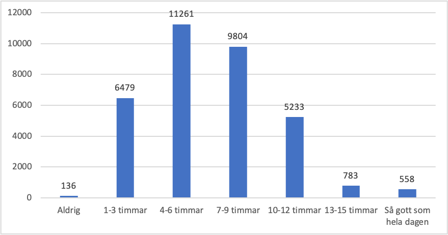 Diagram 1: Så mycket sitter vi ned, antal svarande per tidsintervall.