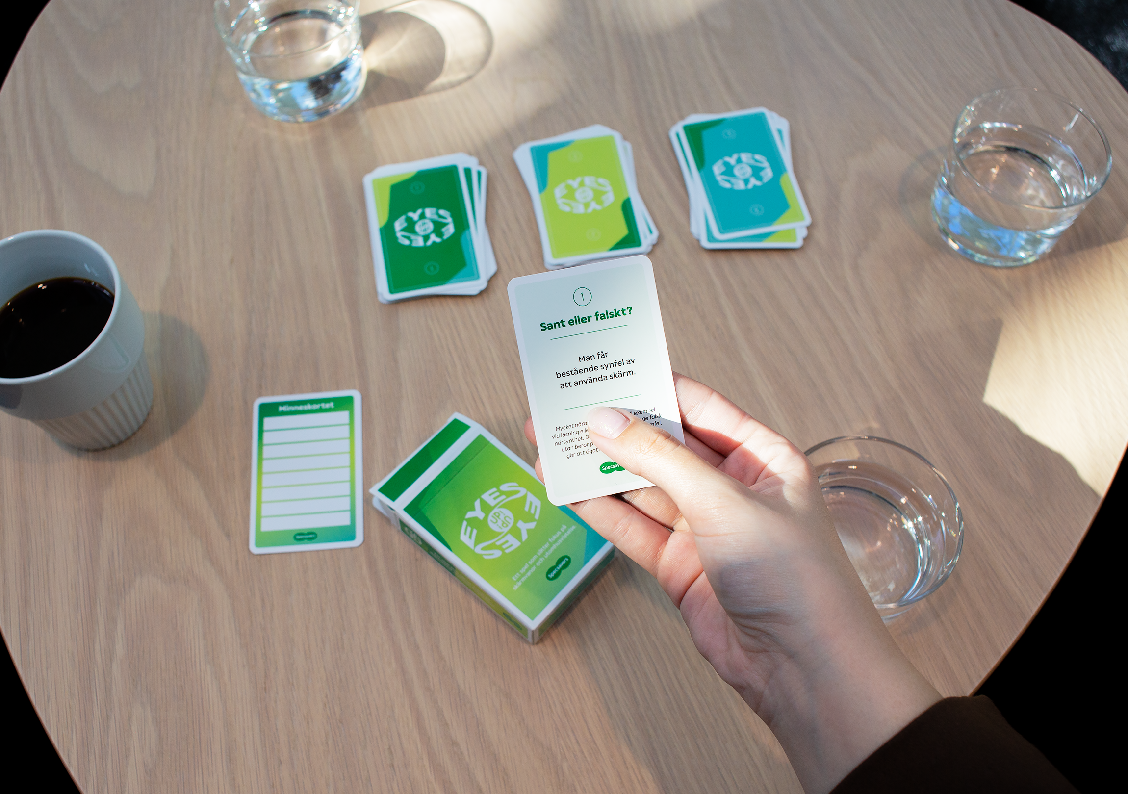 För att hjälpa familjer att komma överens om skärmanvändning och få tips på roliga aktiviteter att göra tillsammans utomhus har Specsavers tagit fram "Eyes up", ett enkelt sällskapsspel i form av en kortlek med varierande innehåll av prövningar, utmaningar och kunskapstest på temat ögonhälsa. Tanken är att spelet på ett lekfullt sätt ska lära familjer några enkla saker att tänka på: