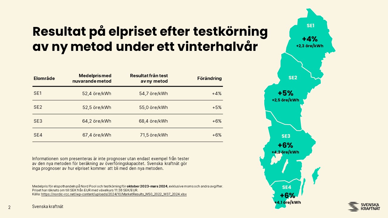 Men under en kortare period än ett år gäller inte detta samband. Testkörningen under den senaste vintern, oktober 2023–mars 2024, fick alla elområden i Sverige högre elpriser med mellan 4-6 procent.