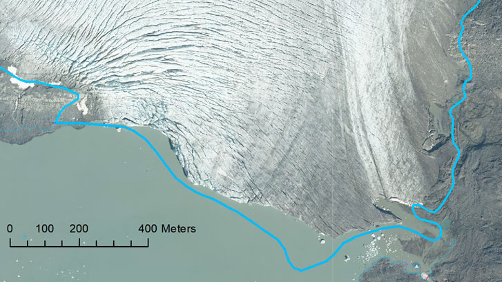Av Lantmäteriets genomgång framgår sammanlagt 18 kvadratkilometer glaciäris har smält bort sedan 2008, vilket motsvarar 2 500 fotbollsplaner.