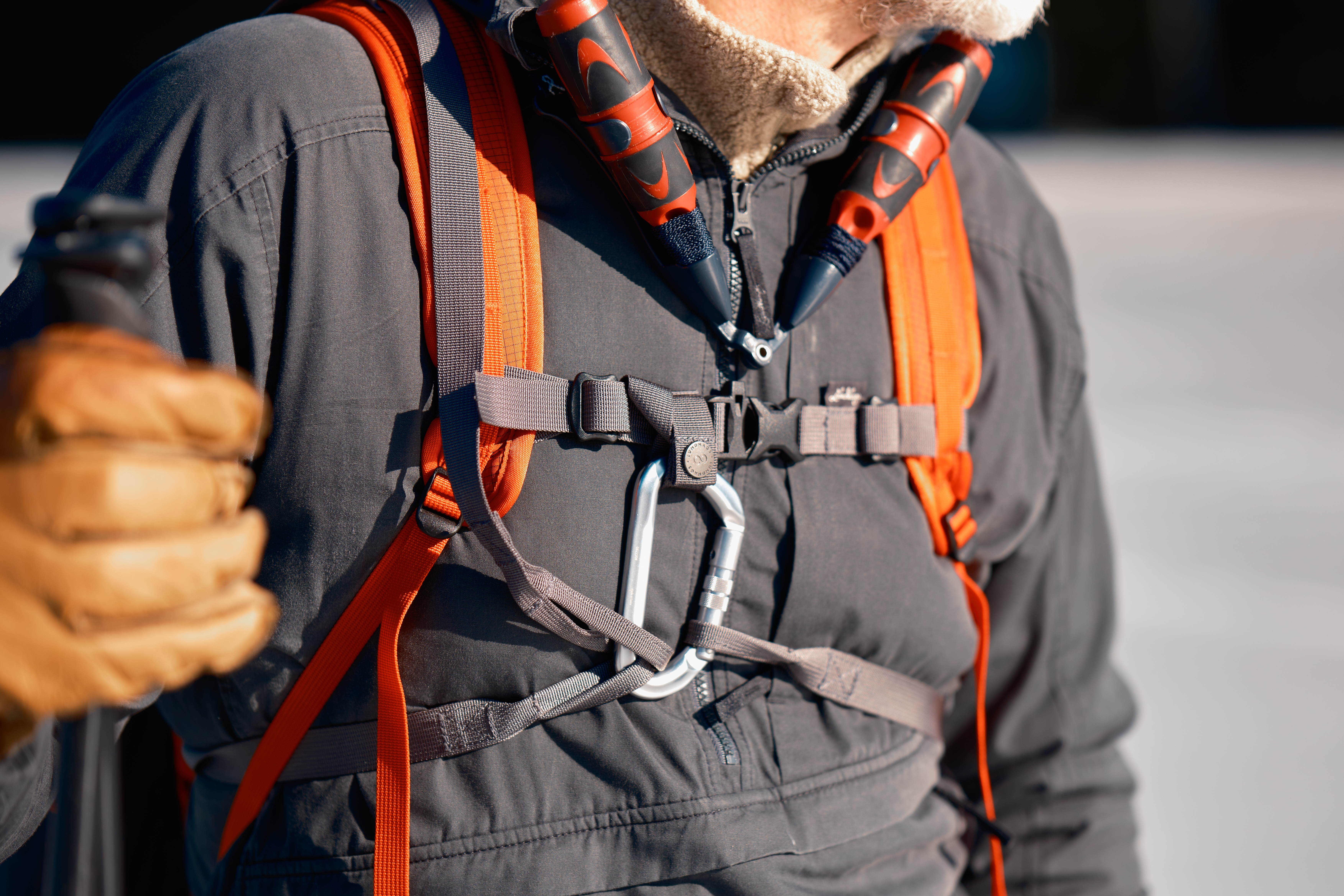- Midjebältet kan enkelt justeras i höjdled efter rygglängd och önskad tyngdpunkt och spännet är monterat i sidan för att minska risken att det fastnar under isen vilket bidrar till extra säkerhet.