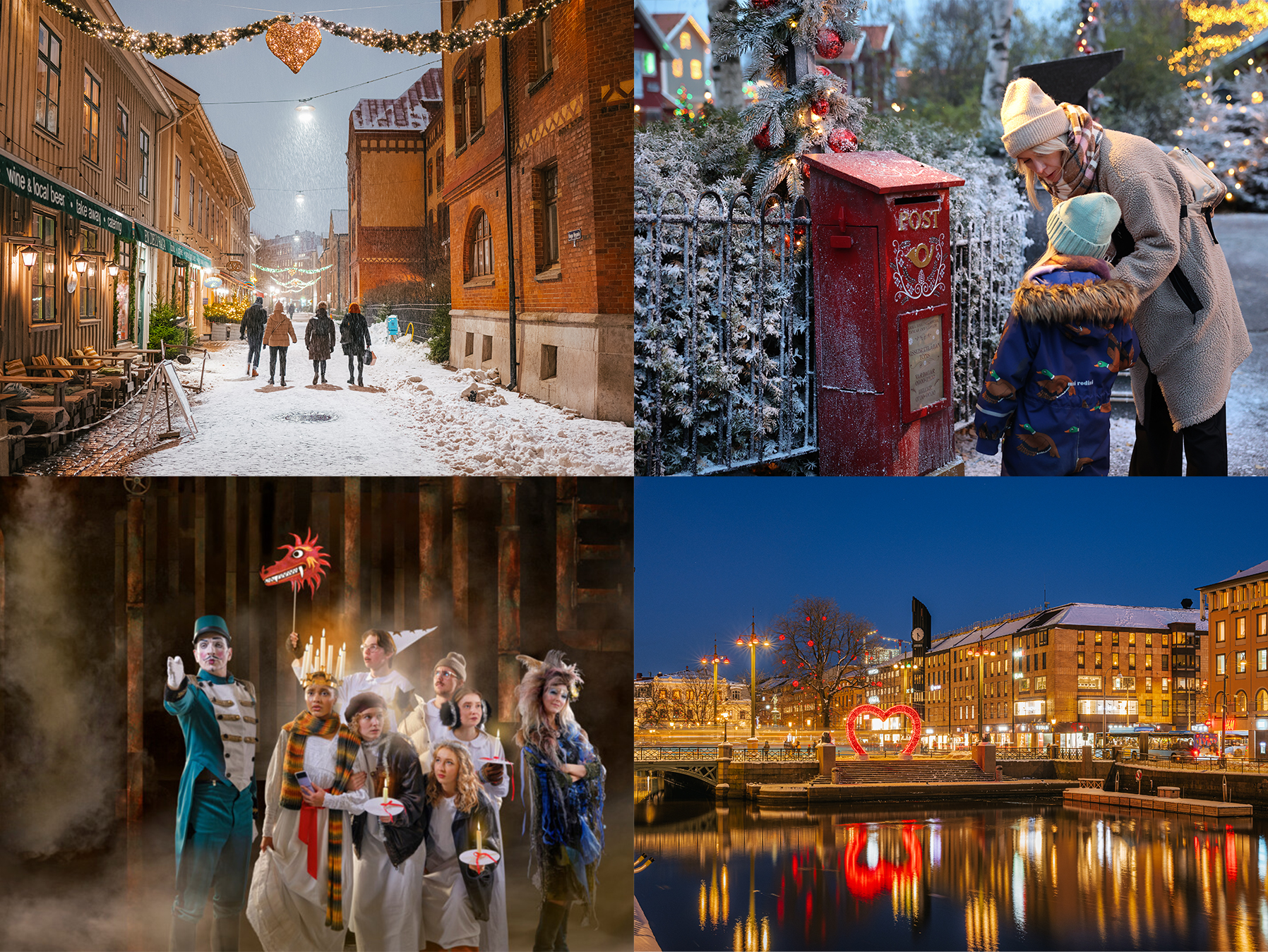 På julen förvandlas Liseberg till en fantastisk vintersaga. Miljoner ljus, glittrande snö och vintervakna karuseller är fond till Sveriges största julmarknad. Se hemsida för aktuella öppettider.