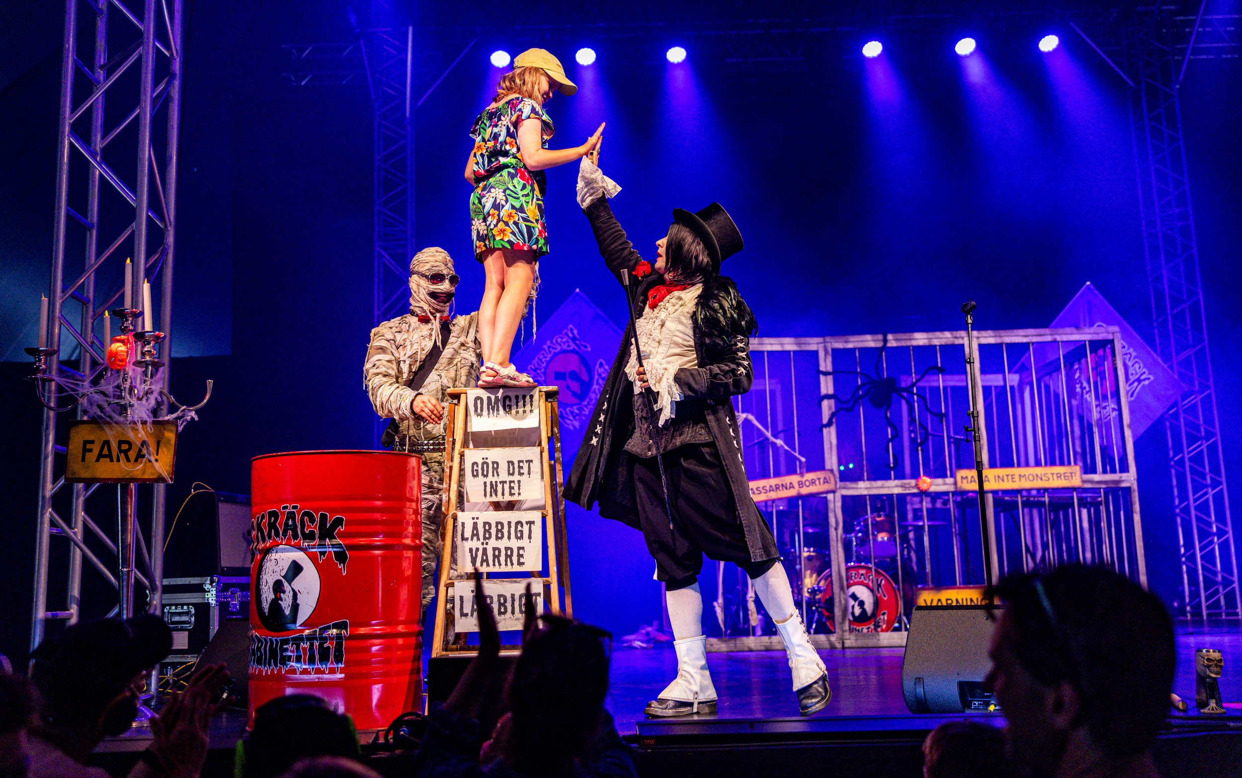 Skräckkabinettet från Malmö gör rockmusik för barn med inspirerande texter om att våga utmana sina rädslor. De har tidigare gjort succé i programmet Sommarlov på SVT Barn och har även lockat storpublik till scener som Parkteatern i Stockholm, Malmöfestivalen och Stora Teatern i Göteborg.