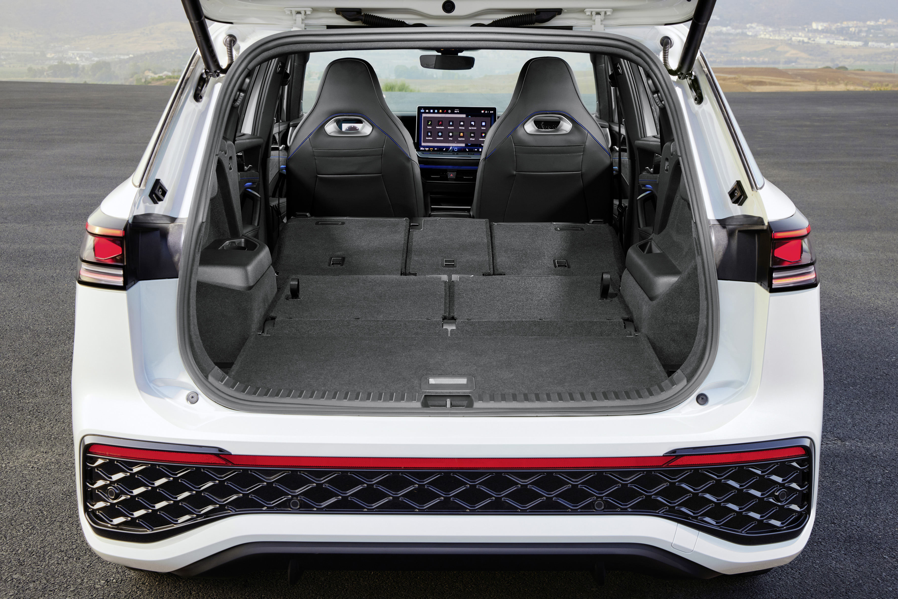 Nya Tayron utnyttjar utrymmet optimalt, vilket en titt in i bagageutrymmet visar. Bagageutrymmet i de femsitsiga versionerna av Tayron eTSI, TSI och TDI erbjuder en volym på upp till 885 liter (lastat upp till ryggstödshöjden i den andra sätesraden). Om Tayron lastas bakom ryggstöden på den första sätesraden ökar lastvolymen till upp till 2 090 liter. I själva bagageutrymmet finns väskkrokar och ett 12 V-uttag som standard. Som tillval kan utrustningen utökas med ett 230 V-uttag och ett praktiskt bagagenät.