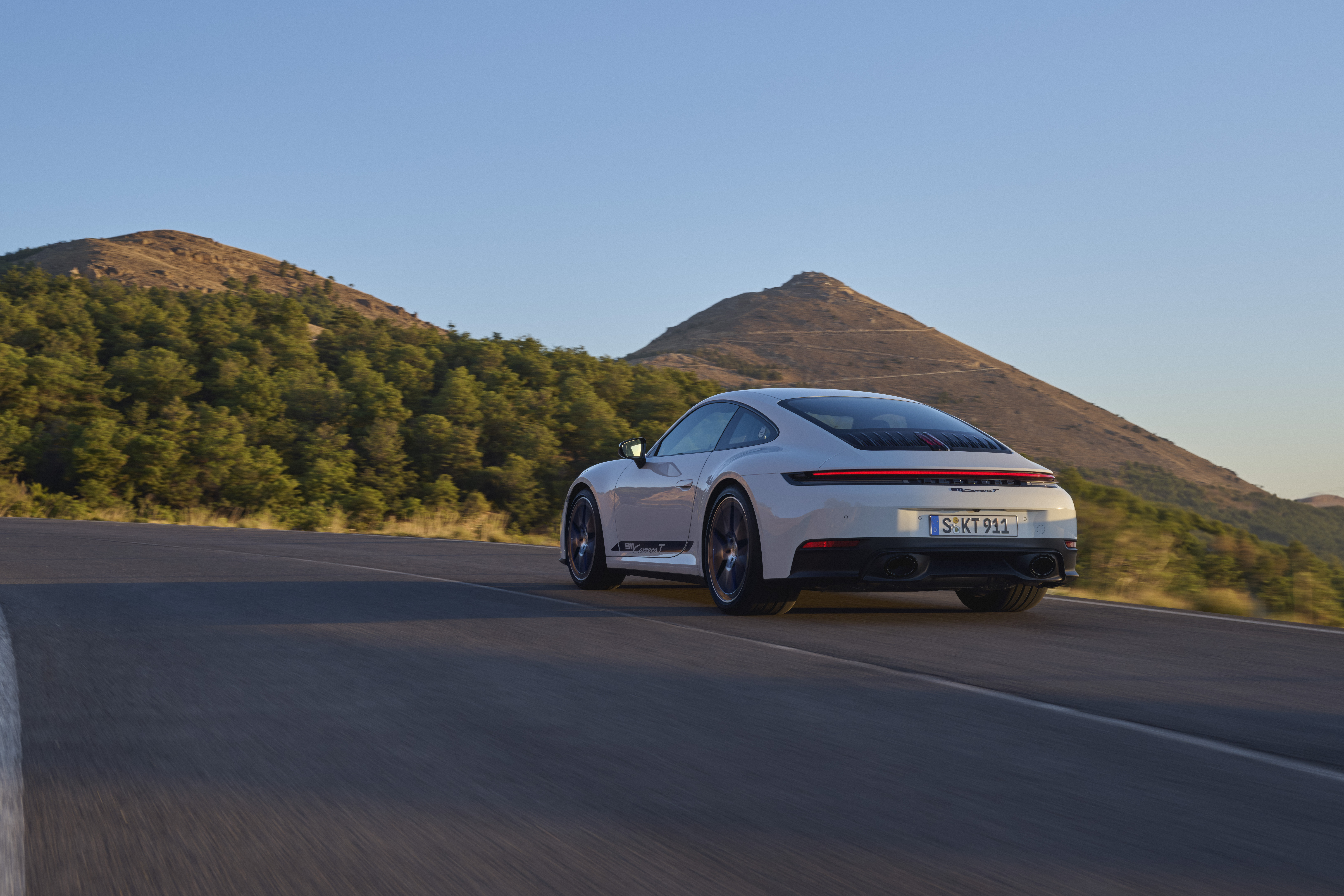 ”T” står för Touring och hos Porsche går det tillbaka ända till homologeringen av 911 T från 1968. Den första versionen av 911 T tillverkades fram till 1973. Sedan 2017 är 911 Carrera T tillbaka i modellutbudet, placerad mellan Carrera och Carrera S. Ren körglädje, smidiga köregenskaper, emotionellt ljud och fokus på det väsentliga är de utmärkande egenskaperna hos denna bakhjulsdrivna sportbil.