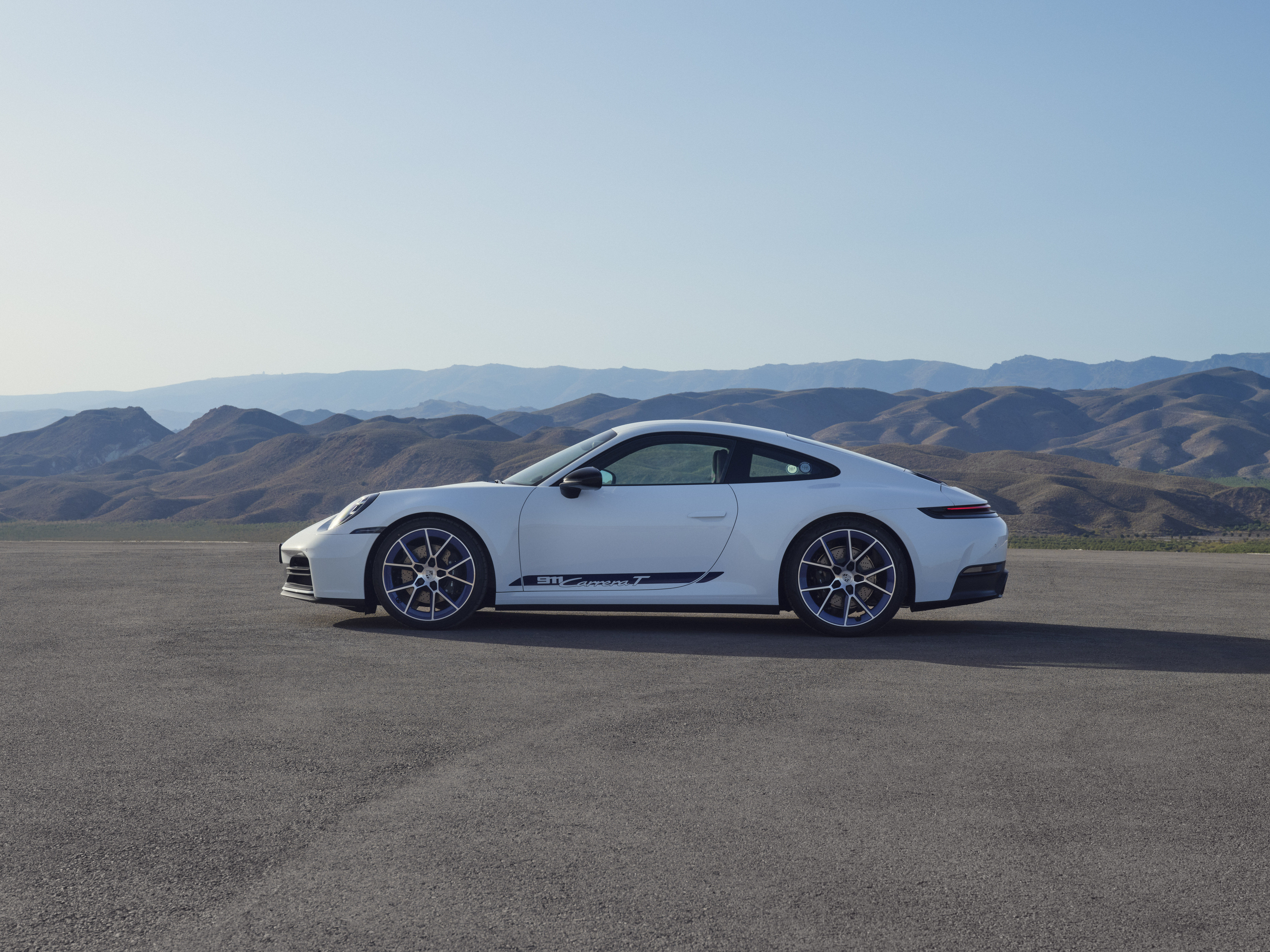 Porsche utökar modellutbudet av nya 911 med den lätta och dynamiska 911 Carrera T. Viktreducerande åtgärder, dynamisk avstämning och manuell växellåda gör denna till en puristisk Carrera för överlägsen körglädje. Med sina lättviktsrutor, reducerade ljudisolering och 6-växlade manuella växellåda väger den lättaste konfigurationen av nya 911 Carrera T, med skalstolar, endast 1 478 kilo. Med den utrustningen är bilen mer än 40 kg lättare än nuvarande 911 Carrera. För första gången finns 911 Carrera T även som cabriolet.