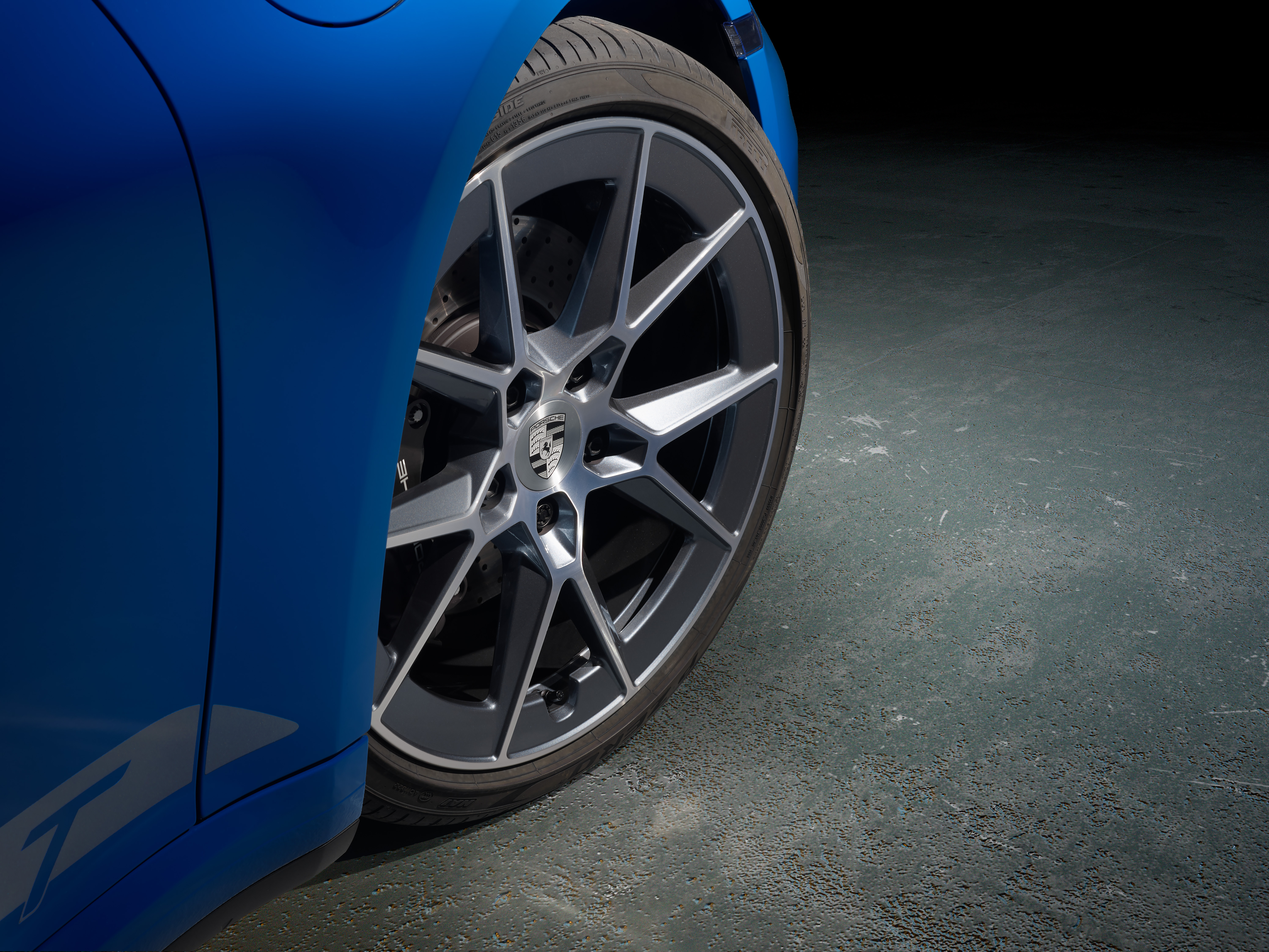 Det adaptiva PASM sportchassit, som är sänkt med 10 mm, är också standard och har fått en modellspecifik, sportig avstämning för att göra Carrera T ännu bättre och smidigare att köra. Den standardmonterade bakaxelstyrningen och en aerodynamisk balans som är optimerad exklusivt för 911 Carrera T har gjort det möjligt att ställa in krängningshämmarna på fram- och bakaxeln för neutrala köregenskaper. 911 Carrera T har 20/21-tums Carrera S lättmetallfälgar. Framdäcken är 245/35 ZR20 och bakdäcken 305/30 ZR21.