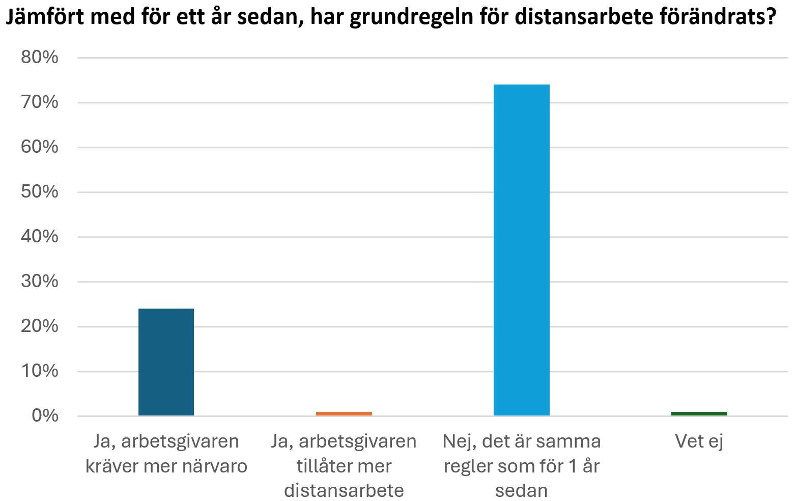 I oktober gjorde Sveriges Ingenjörer en enkätundersökning med 2 000 medlemmar och en enkätundersökning med 476 fackklubbar, akademikerföreningar, på arbetsplatser i hela Sverige. De visar en tydlig trend mot att allt fler företag vill öka kontorsnärvaron. Nära en fjärdedel av de tillfrågade lokala fackklubbarna uppger att det införts krav på ökad kontorsnärvaro under det senaste året. Även i medlemspanelen uppger 27 procent att arbetsgivarna ökat kraven på kontorsnärvaro under det senaste året.