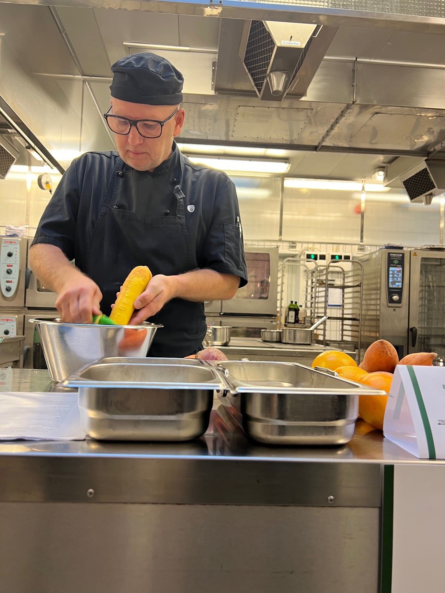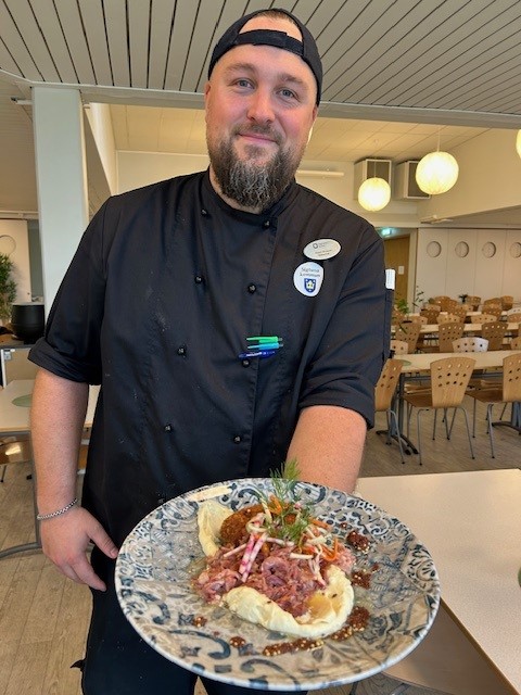 Jag har jobbat på allt från lyxkrog till restaurangkedjor men inget slår offentliga måltider. Maten behöver varken vara tråkig eller smaklös, utan kan hålla riktigt hög klass. Det visar vi med tävlingar som den här, säger Adam Brolund som är kökschef i Ekillaköket i Sigtuna kommun.