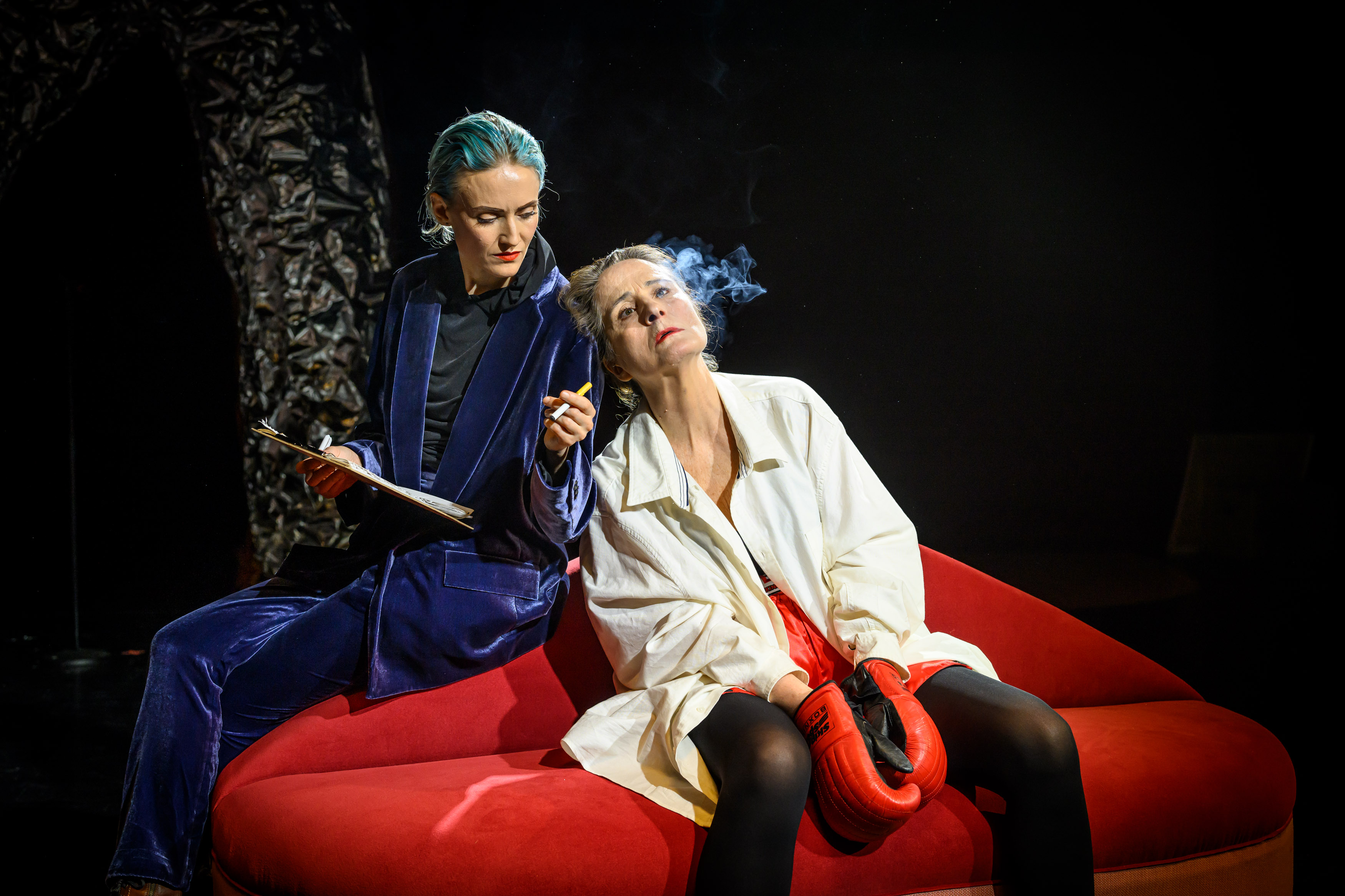 Dessutom släpps fler föreställningar till den helt utsålda Kvinnor i mörkret som spelades under september och oktober på Intiman. Kvinnor i mörkret är skriven av två unga dramatiker från Kyjiv, efter Rysslands invasion av Ukraina. Pjäsen bygger på inlägg i sociala medier och kvinnors upplevelser av att leva i Kyjiv under kriget – med utgångspunkt i de många och återkommande strömavbrotten. Med svart humor och djupt allvar skildras vardagsnära situationer, hur det är i att leva i mörkret i ett krigsdrabbat land. Regidebut av Moa Silén, som länge arbetat som skådespelare på Uppsala stadsteater. I rollerna: Emelie Falk och Valia Sapouna.