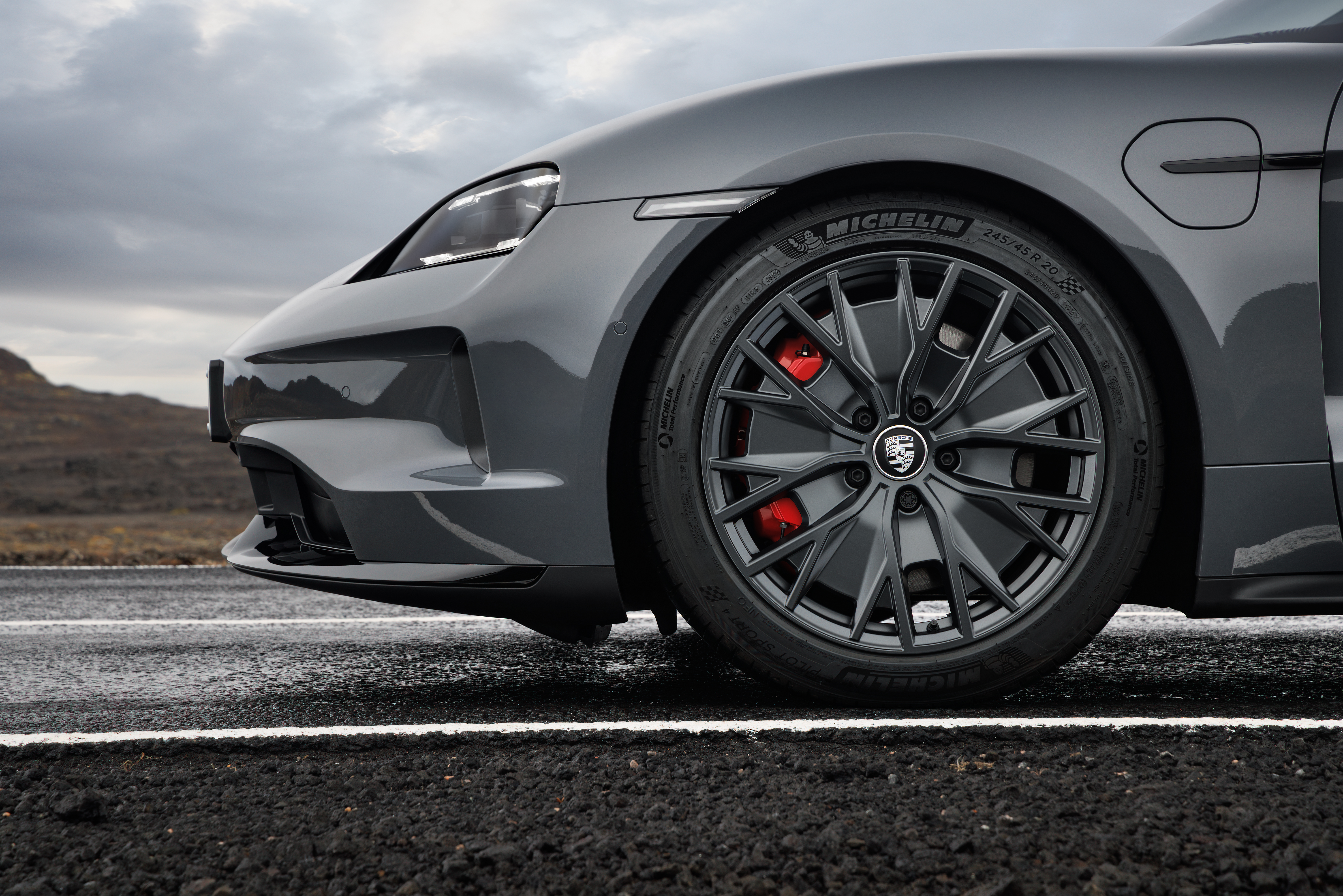 Exteriören och interiören är lika distinkta. De många exteriördetaljerna i färgerna Black eller Anthracite Grey är typiska för GTS. Nytt för Taycan GTS jämfört med föregångaren är frontspoilern och bakkjolen i sportdesign med inlägg lackerade i högglanssvart. Samma högglanssvarta nyans används även på infästningen till ytterbackspegeln. Såväl standardfälgarna Taycan Turbo S Aero Design i 20”-storlek som tillvalsfälgarna RS Spyder Design i 21”-storlek är exklusivt lackerade i Anthracite Grey på GTS.