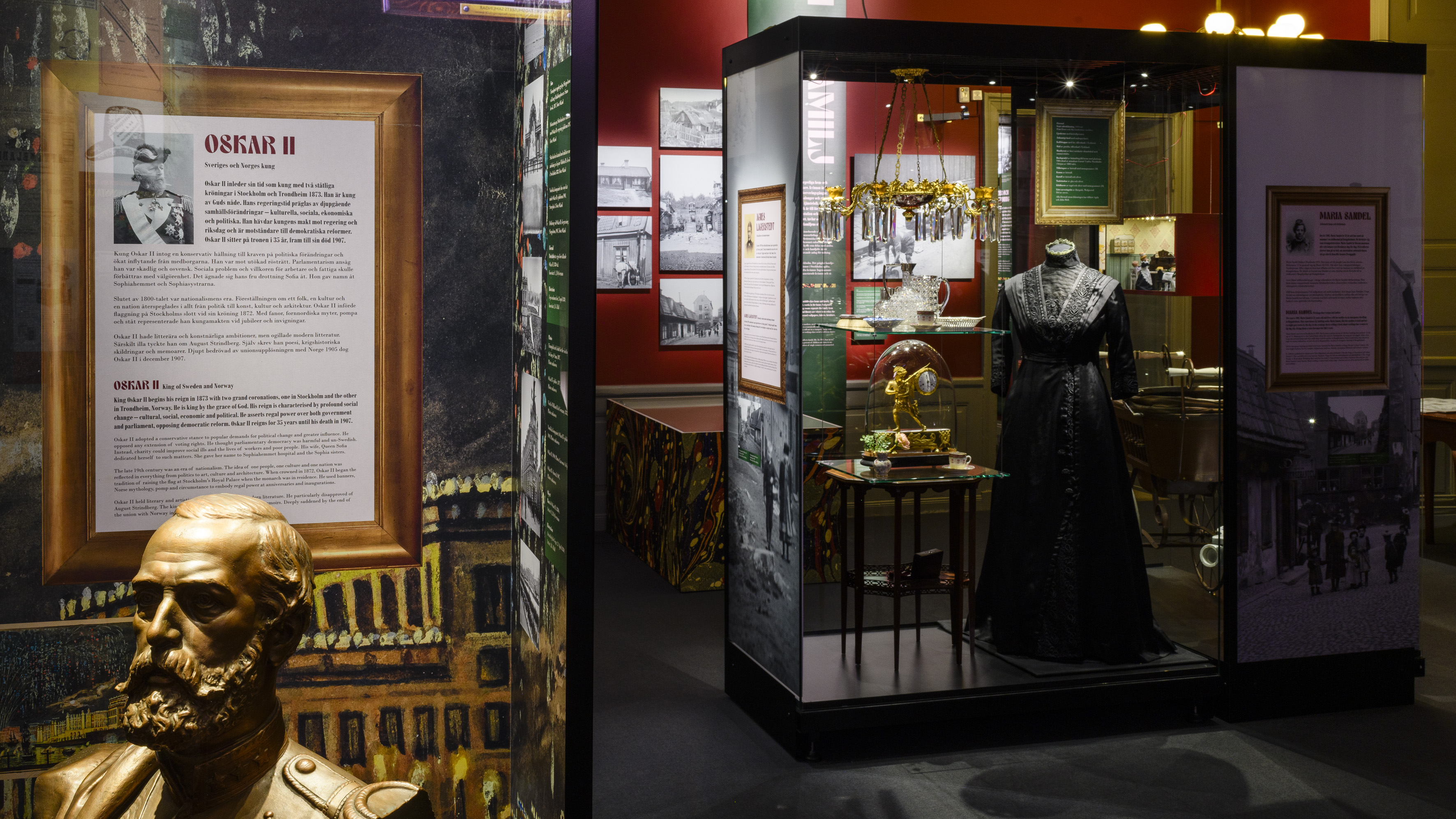 ”Nya Stockholm – sekelskiftet 1900” bjuder besökarna på en rafflande resa i tiden. I teman som ”Stockholmsnöjen”, ”Gatan” och ”Hem och familj” får de lära känna stockholmare som var med och lade grunden till staden som vi känner den idag; gatupojkar och sedlighetsivrare, fotografer och författare, affärskvinnor, akrobater och varietéartister – och en bitter kung som stretar emot.