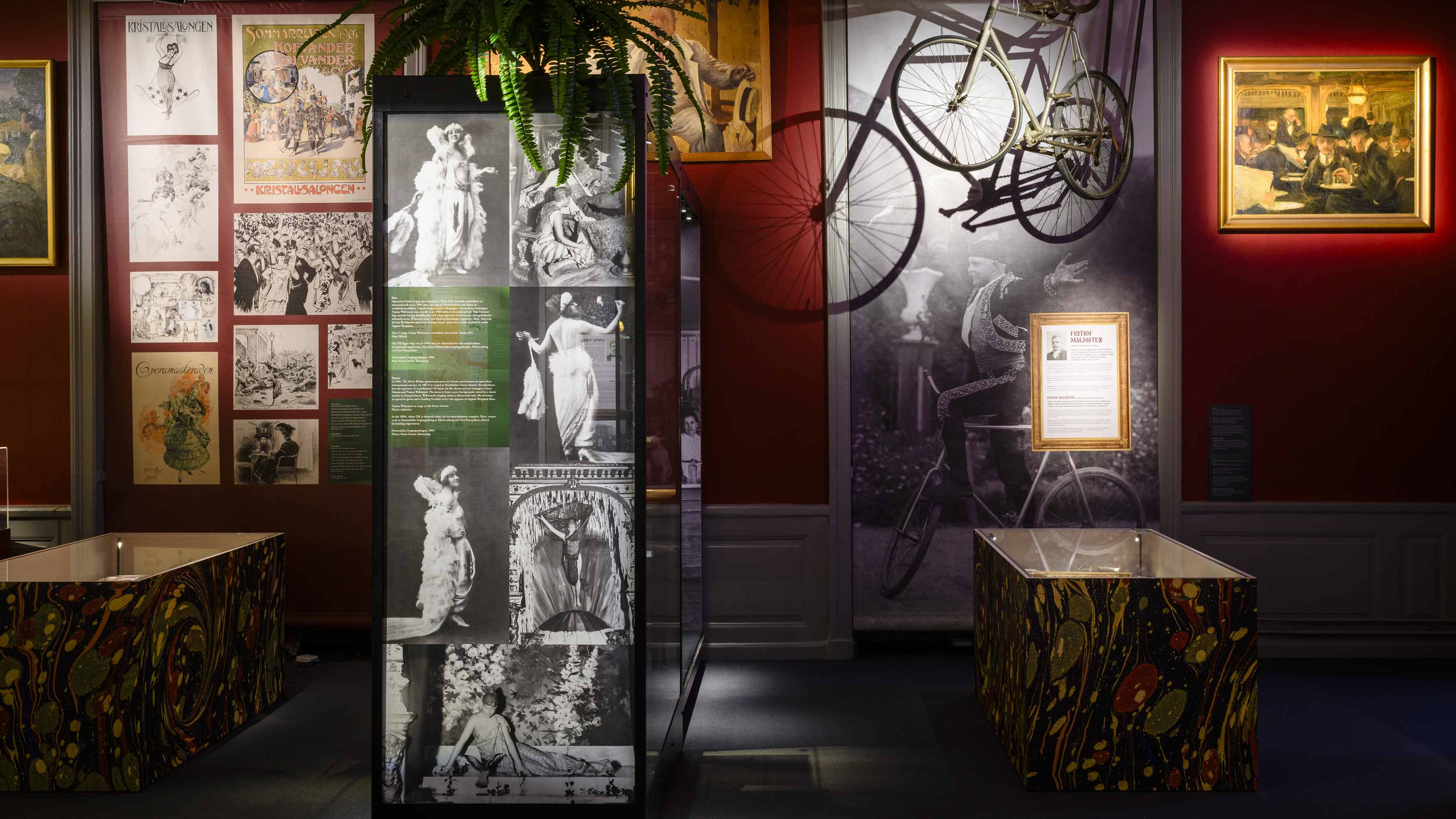 ”Nya Stockholm – sekelskiftet 1900” bjuder besökarna på en rafflande resa i tiden. I teman som ”Stockholmsnöjen”, ”Gatan” och ”Hem och familj” får de lära känna stockholmare som var med och lade grunden till staden som vi känner den idag; gatupojkar och sedlighetsivrare, fotografer och författare, affärskvinnor, akrobater och varietéartister – och en bitter kung som stretar emot.