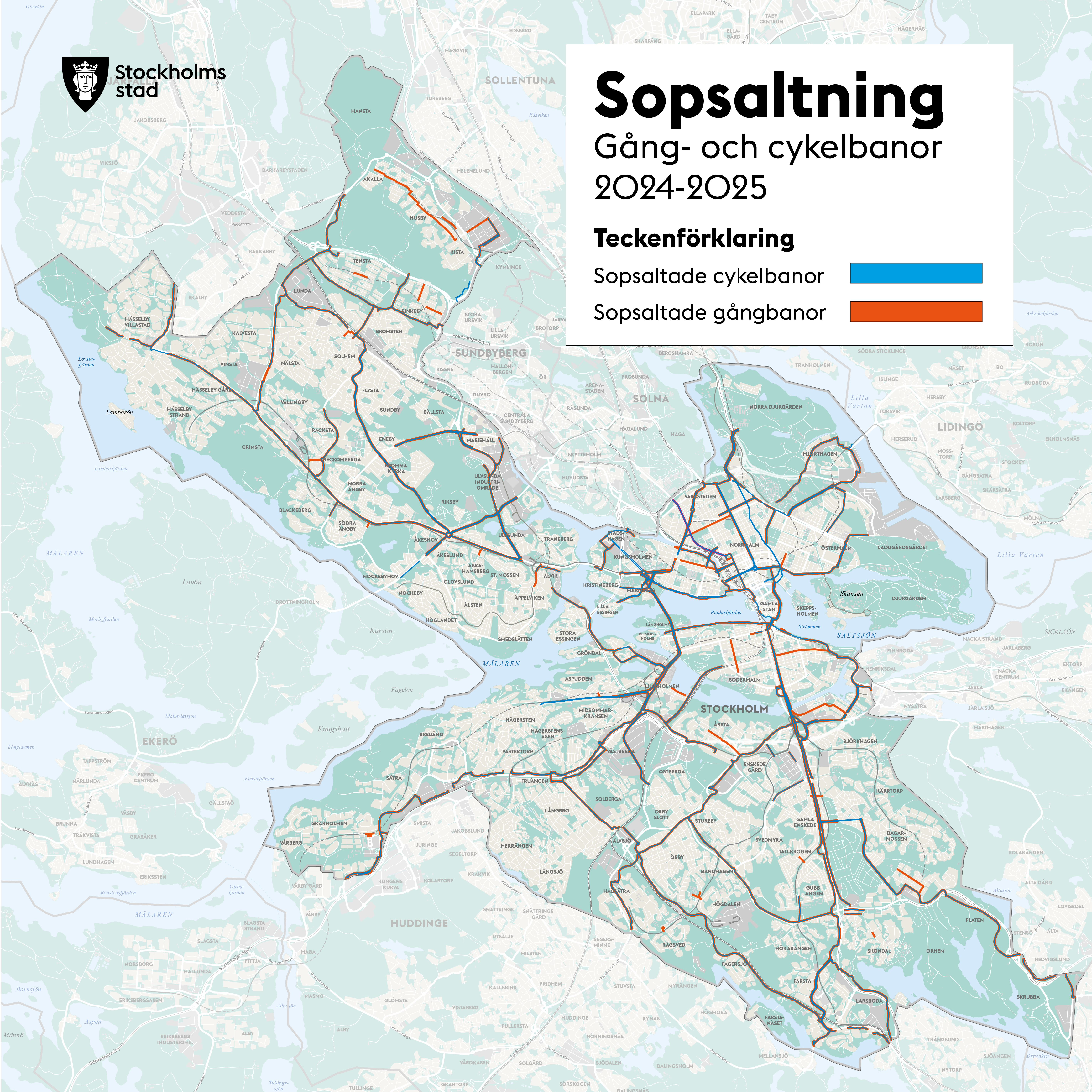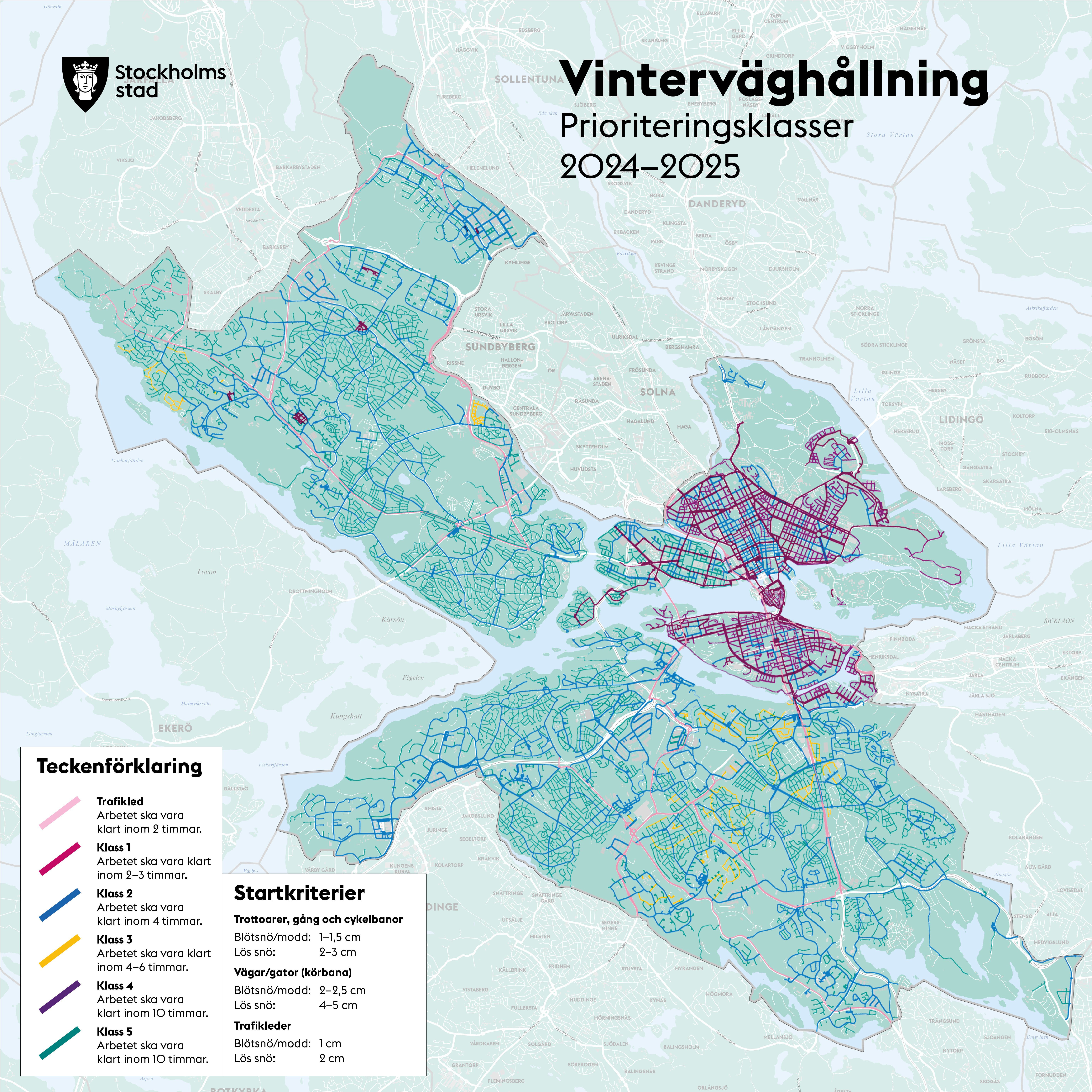 Högupplösta kartor över snöröjning och sopsaltning i Stockholms stad finns att ladda ner nedan.