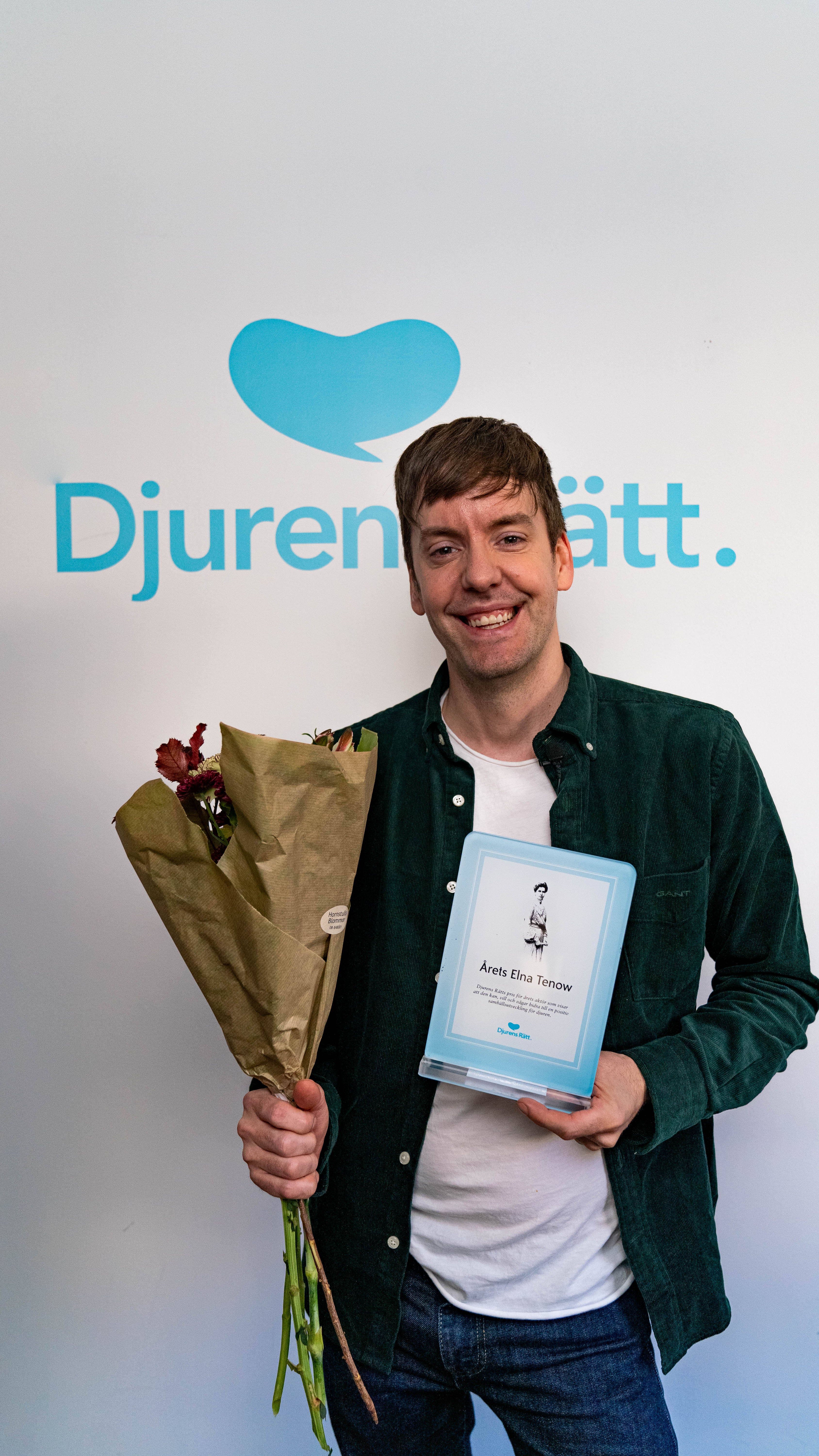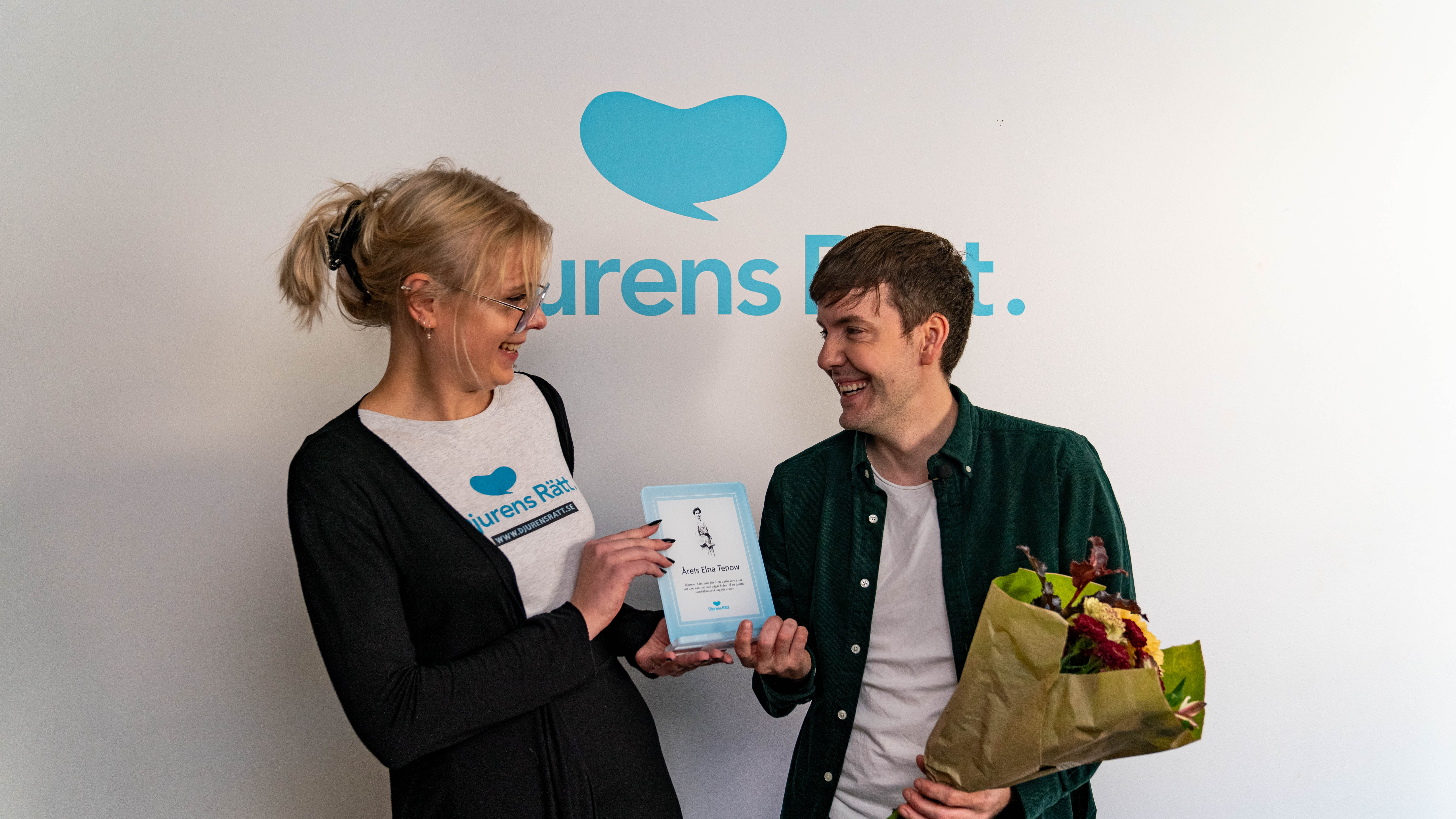 Vid prisceremonin överlämnades Elna Tenow-statyetten av Djurens Rätts vice ordförande, Tina Hogevik: