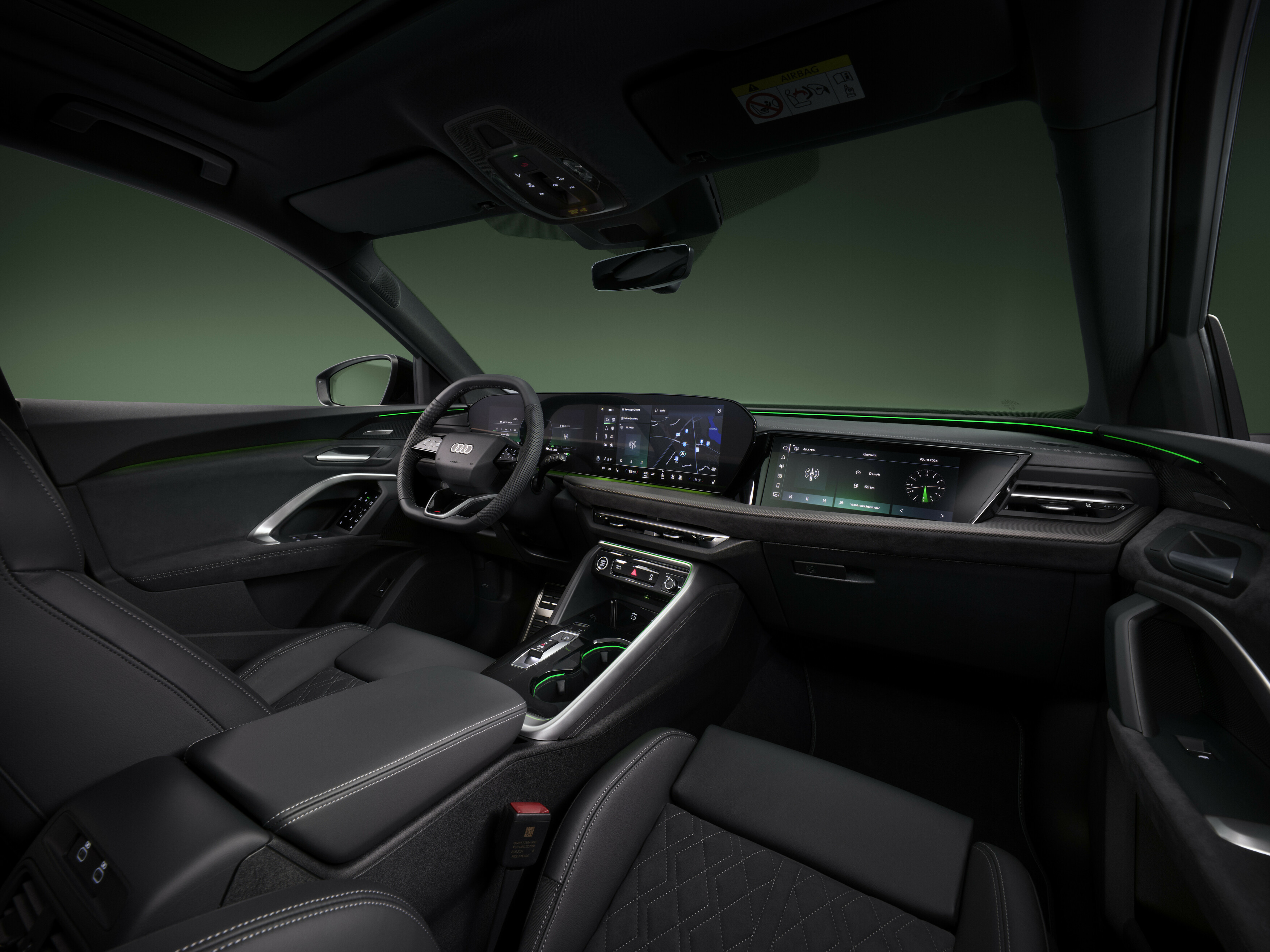 Interiören i nya Q5 Sportback är konsekvent anpassad efter passagerarnas behov och förkroppsligar Audis nya designfilosofi. Materialegenskaperna påverkade utformningen redan på ett tidigt stadium och bildar tillsammans med Audi MMI-panoramadisplayen och MMI-passagerardisplayen en digital scen. Den kontrastrika interiördesignen placerar medvetet element i förgrunden eller bakgrunden och skapar en tredimensionell rumsarkitektur som förenar estetik med ergonomi. Interiören har en behaglig atmosfär där den så kallade ”Softwrapen” sträcker sig från dörrarna, över hela förarplatsen till mittkonsolen och skapar en homogen och välkomnande känsla av rymd. Material som klädseln Cascade och mikrofibern Dinamica är huvudsakligen tillverkade av återvunnen polyester, vilket visar att Audi åtagit sig att använda resurser på ett hållbart och effektivt sätt.