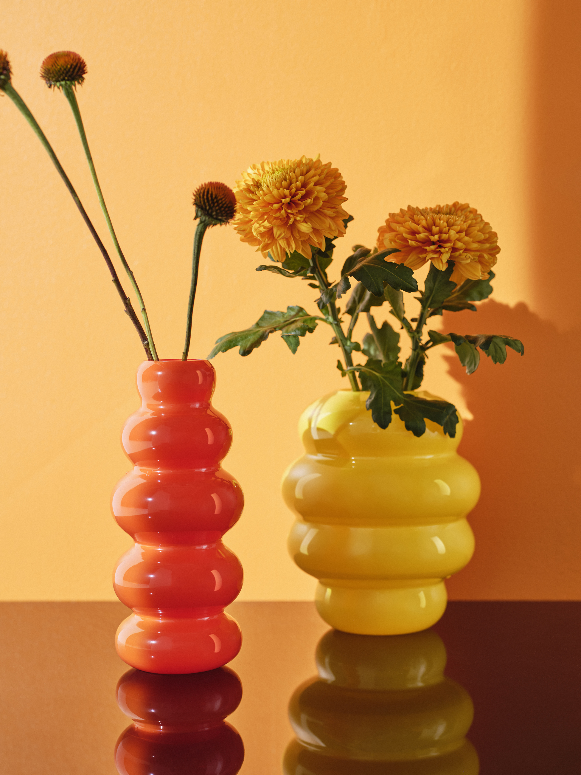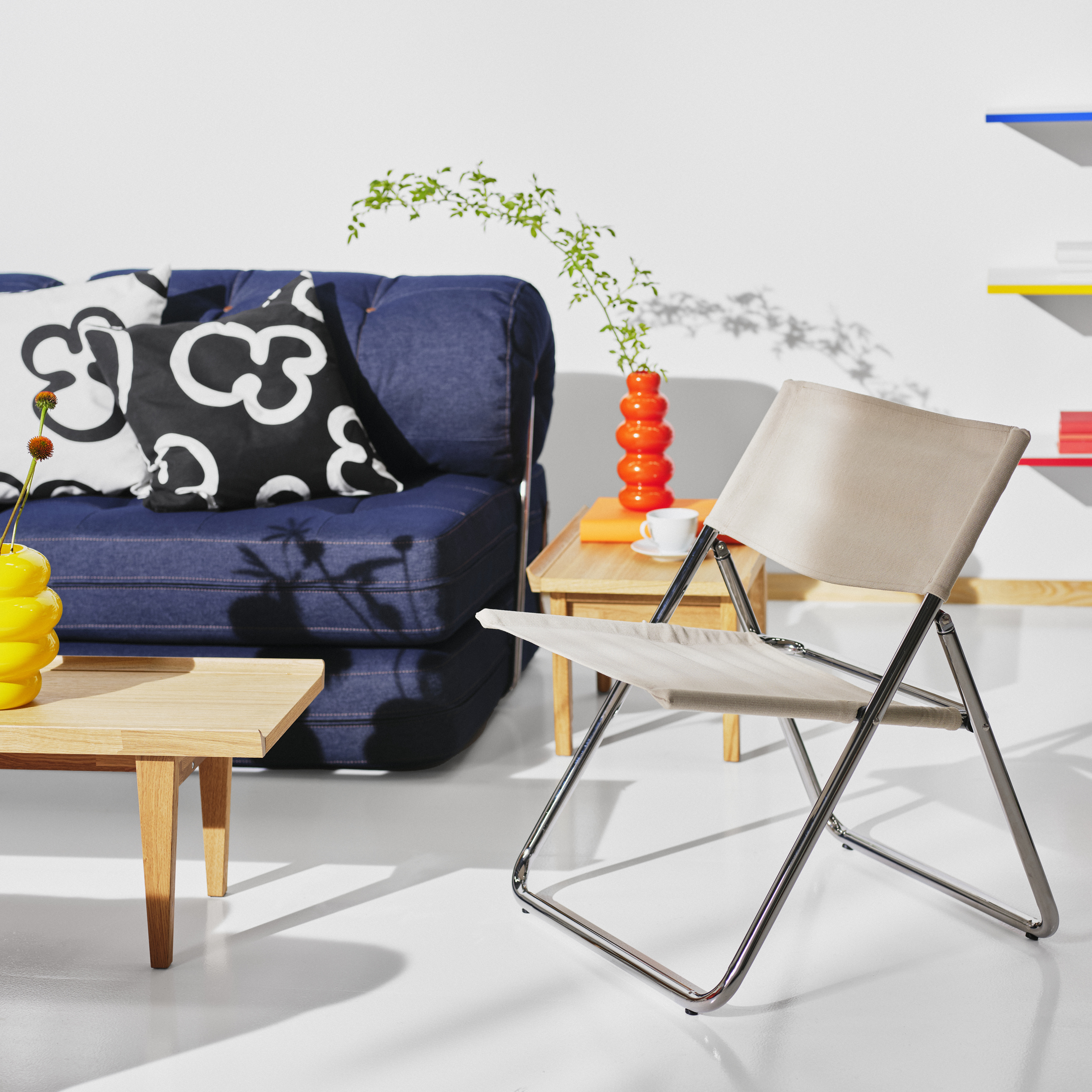 - Det räcker med att lägga till en möbel från den här kollektionen för att göra ett statement, dessutom är det möbler som kan ändra form och färg för att passa varje enskilt hem, säger Karin Gustavsson, kreativ ledare för Nytillverkad-kollektionen. Vi har hämtat inspiration från fyra decennier och omformulerat föremålen så att de känns fräscha och nya. Du hittar en palett med djärva färger, men också mjukare, kurvigare detaljer och lekfulla tryck som gör vardagen lite roligare.