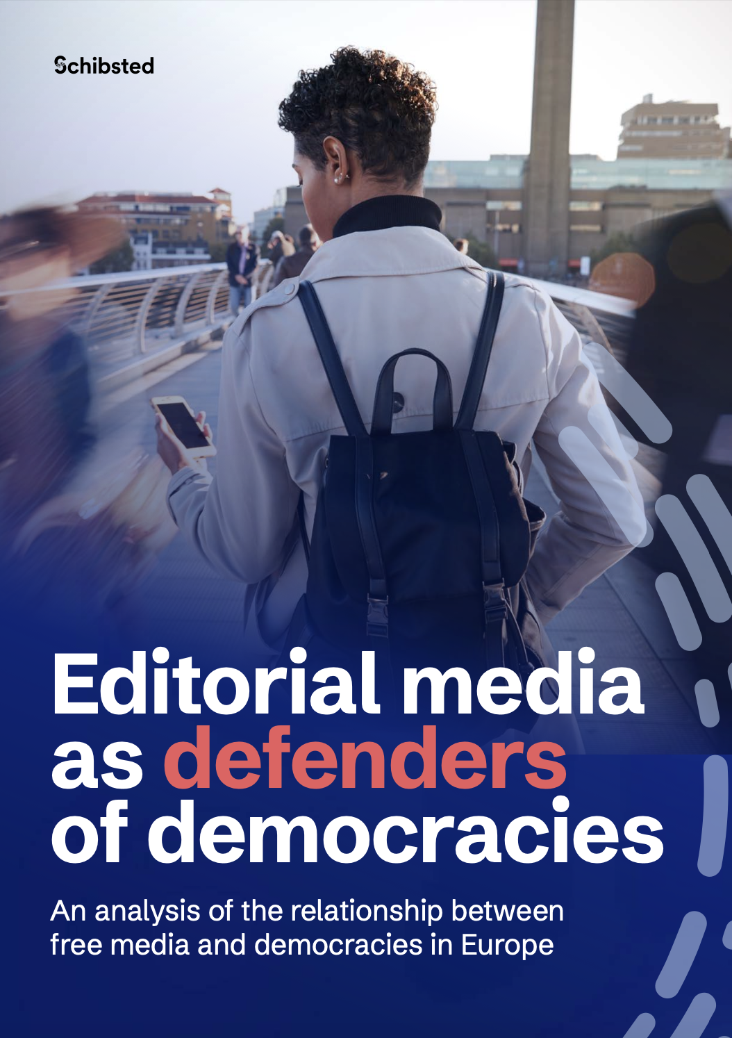 Schibsted Medias rapport analyserar data om demokratinivå, mediefrihet och mediemångfald i Europa. Den innehåller också expertintervjuer om de viktigaste trenderna i relationen mellan demokratier och redaktionella medier de senaste åren.