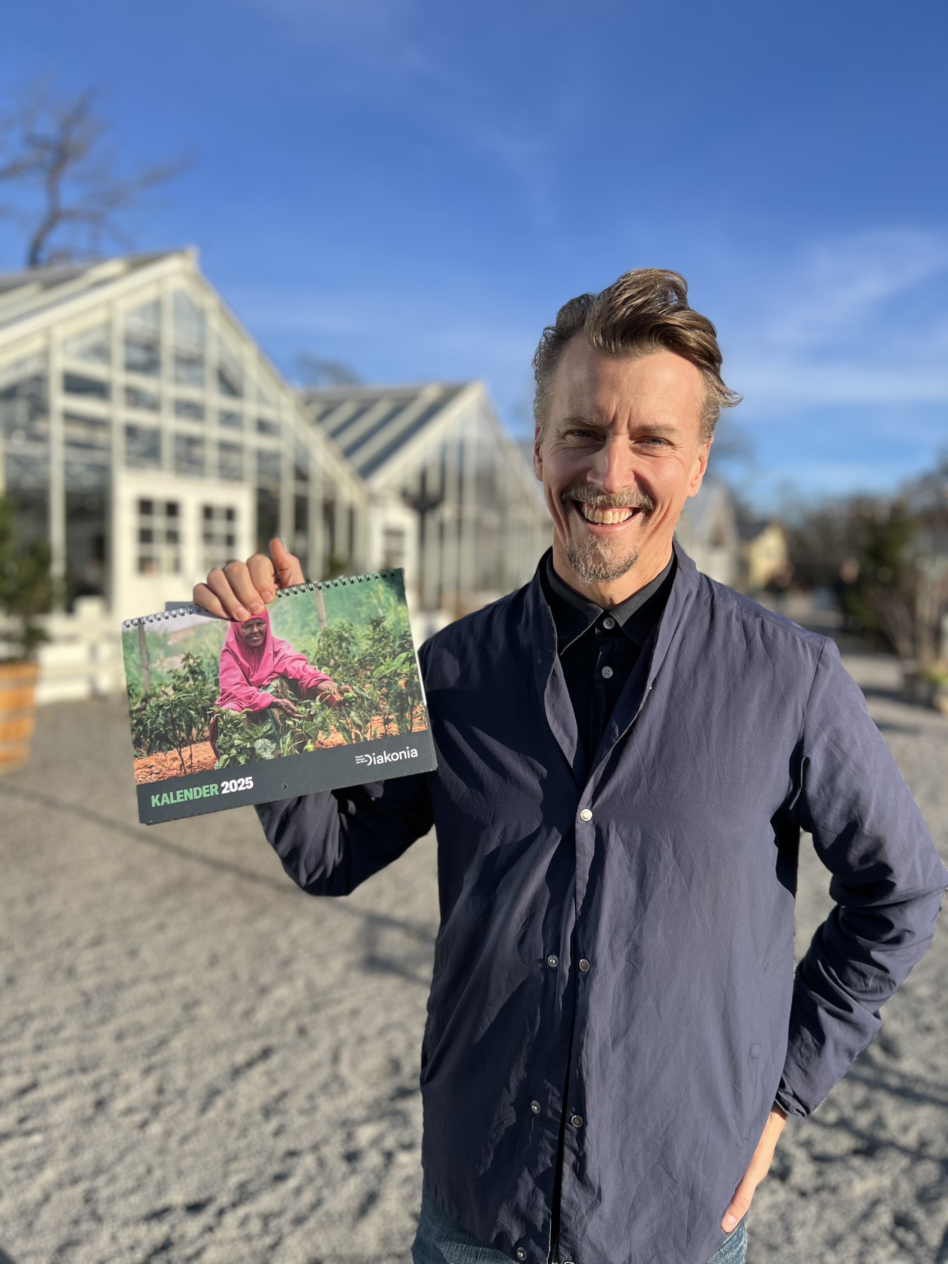 Tillsammans med den välkände hållbarhetskocken Paul Svensson har Diakonia tagit fram en vacker kalender för 2025. Kalendern, som har fokus på matsäkerhet och odling, innehåller fyra recept som komponerats av Paul Svensson. Intäkterna går till Diakonias verksamhet.