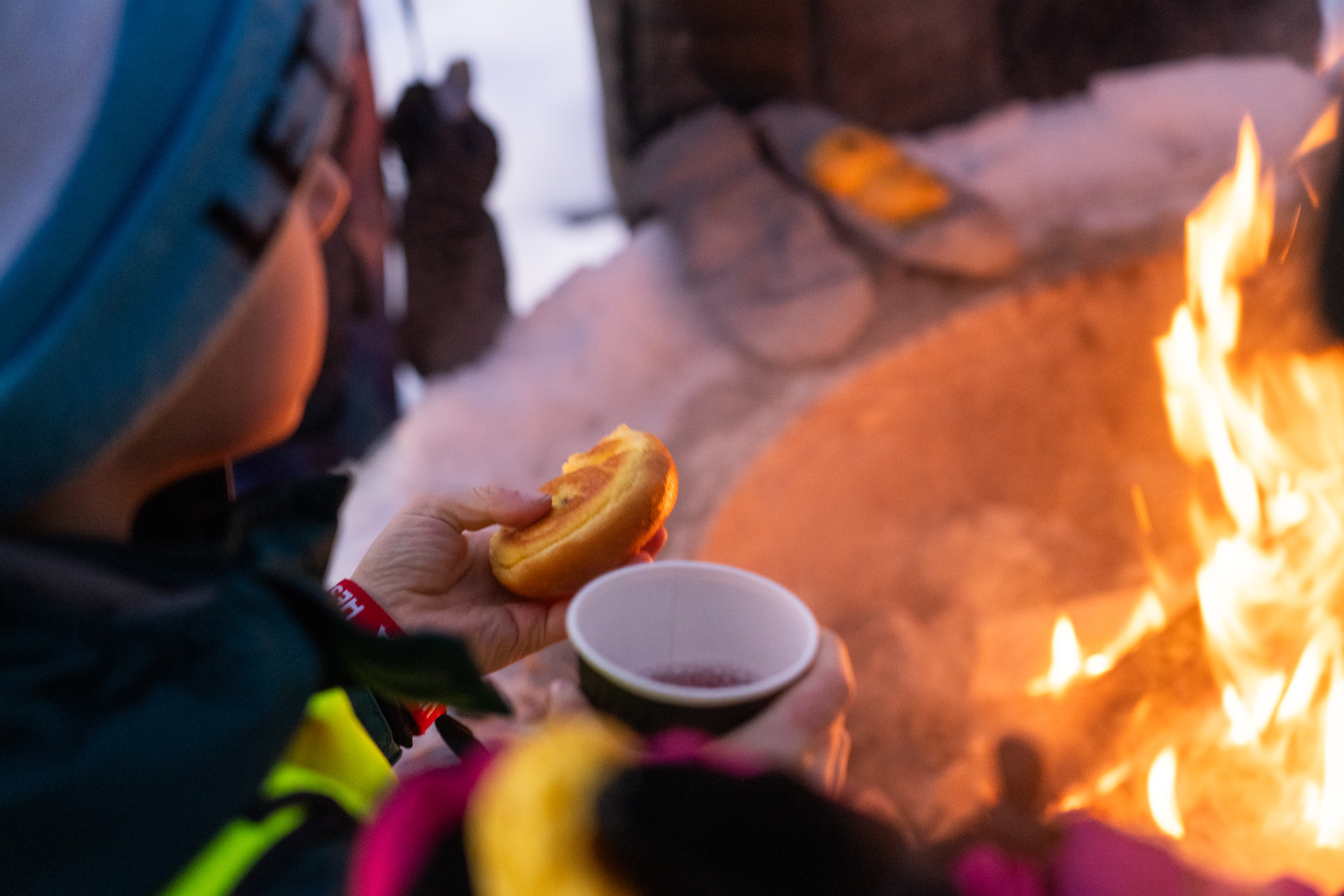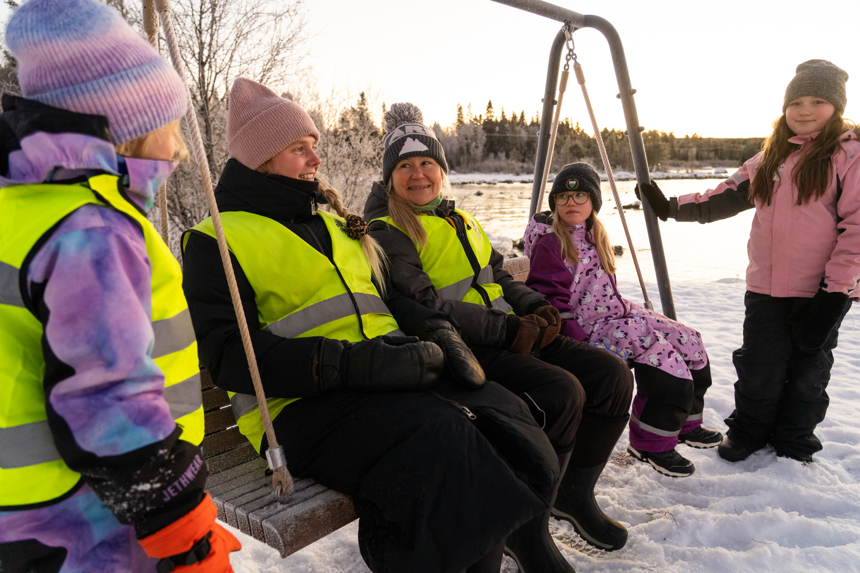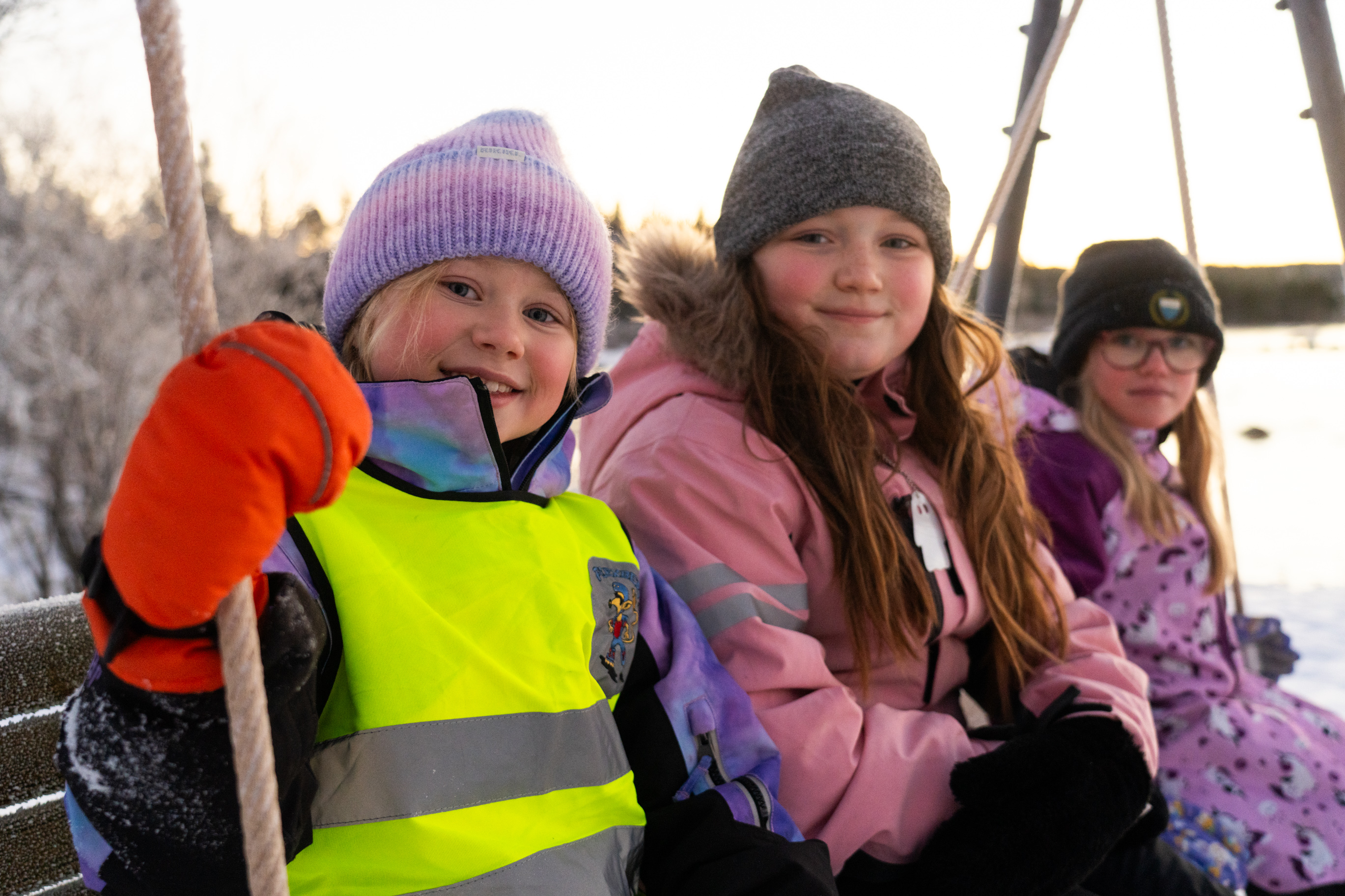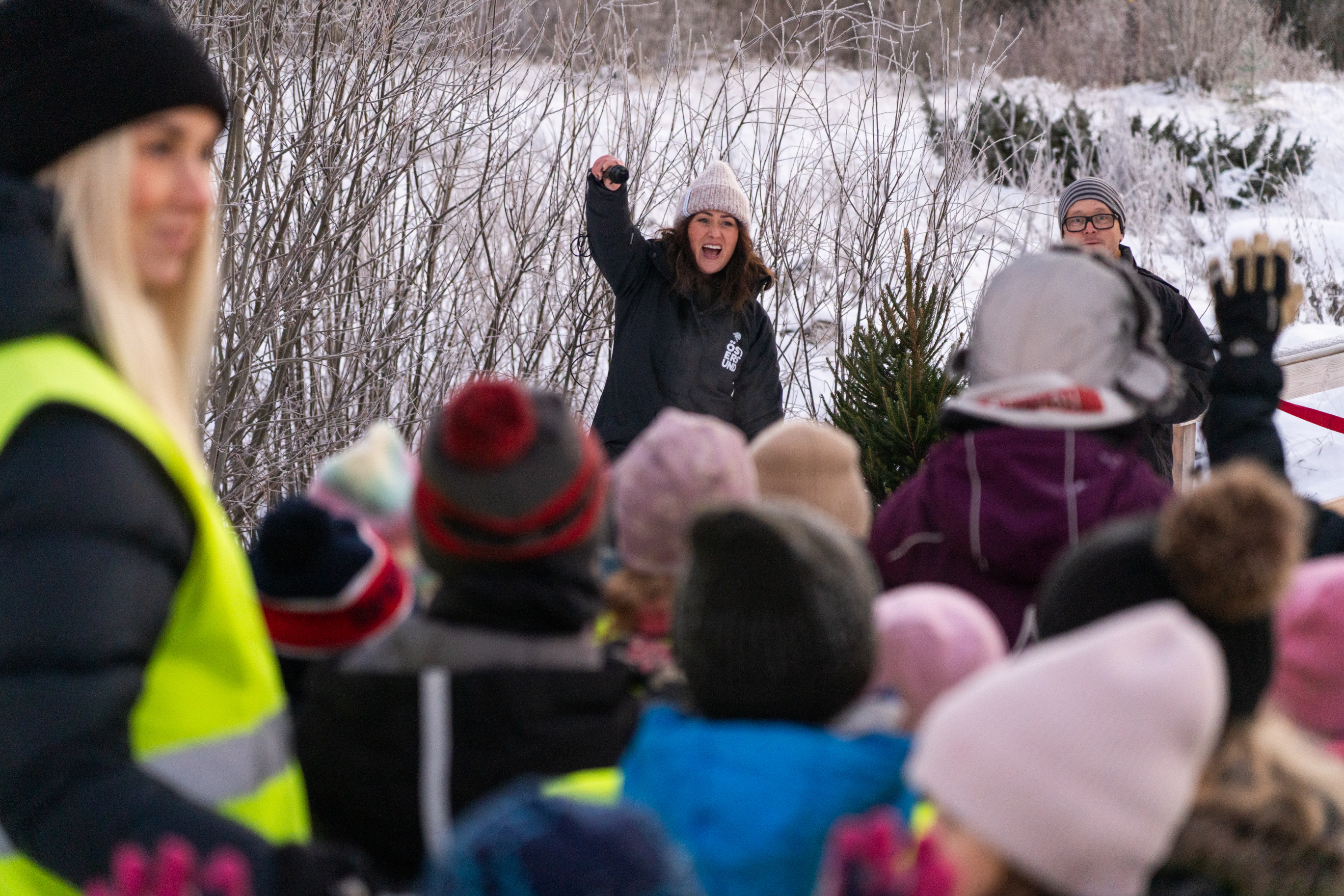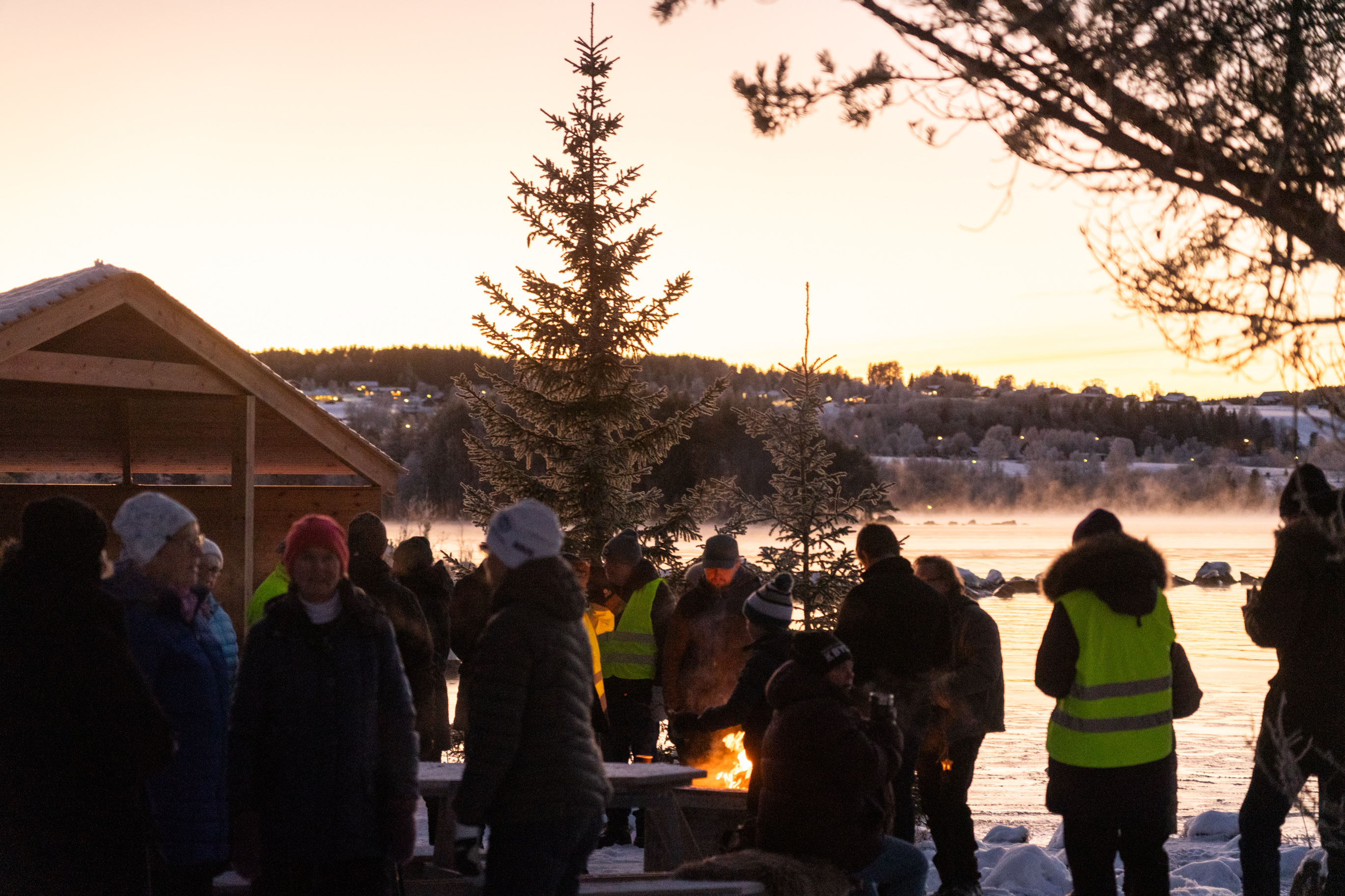 På plats fanns även flera nyfikna lokalbor, däribland barn och pedagoger från Storvikskolan som bjöds på lussekatter och varm saft i solnedgången.
