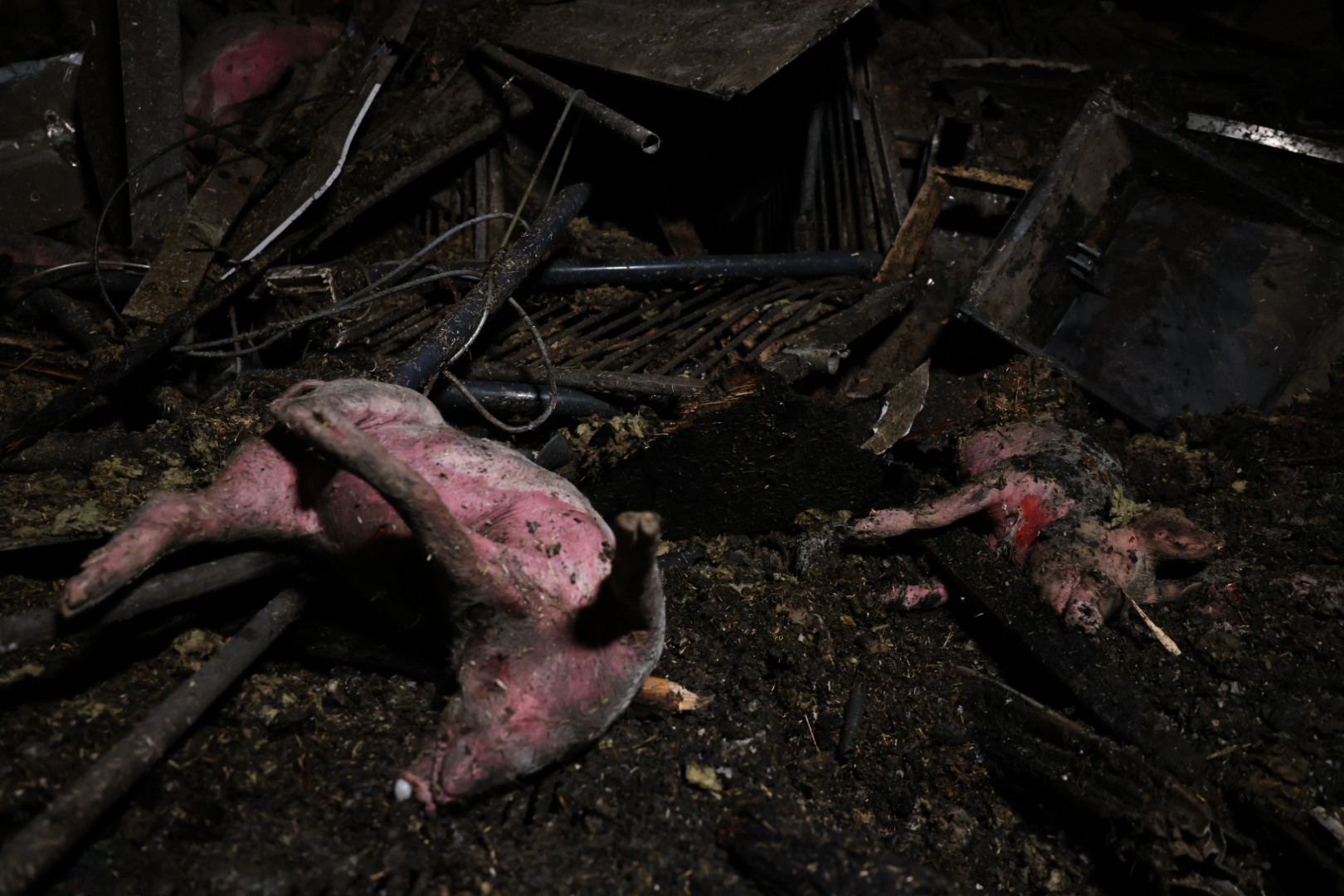 2 600 grisar dog i en brand i en djurfabrik utanför Mellerud. Djurrättsalliansen har varit på plats för att dokumentera djurens fruktansvärda öde.