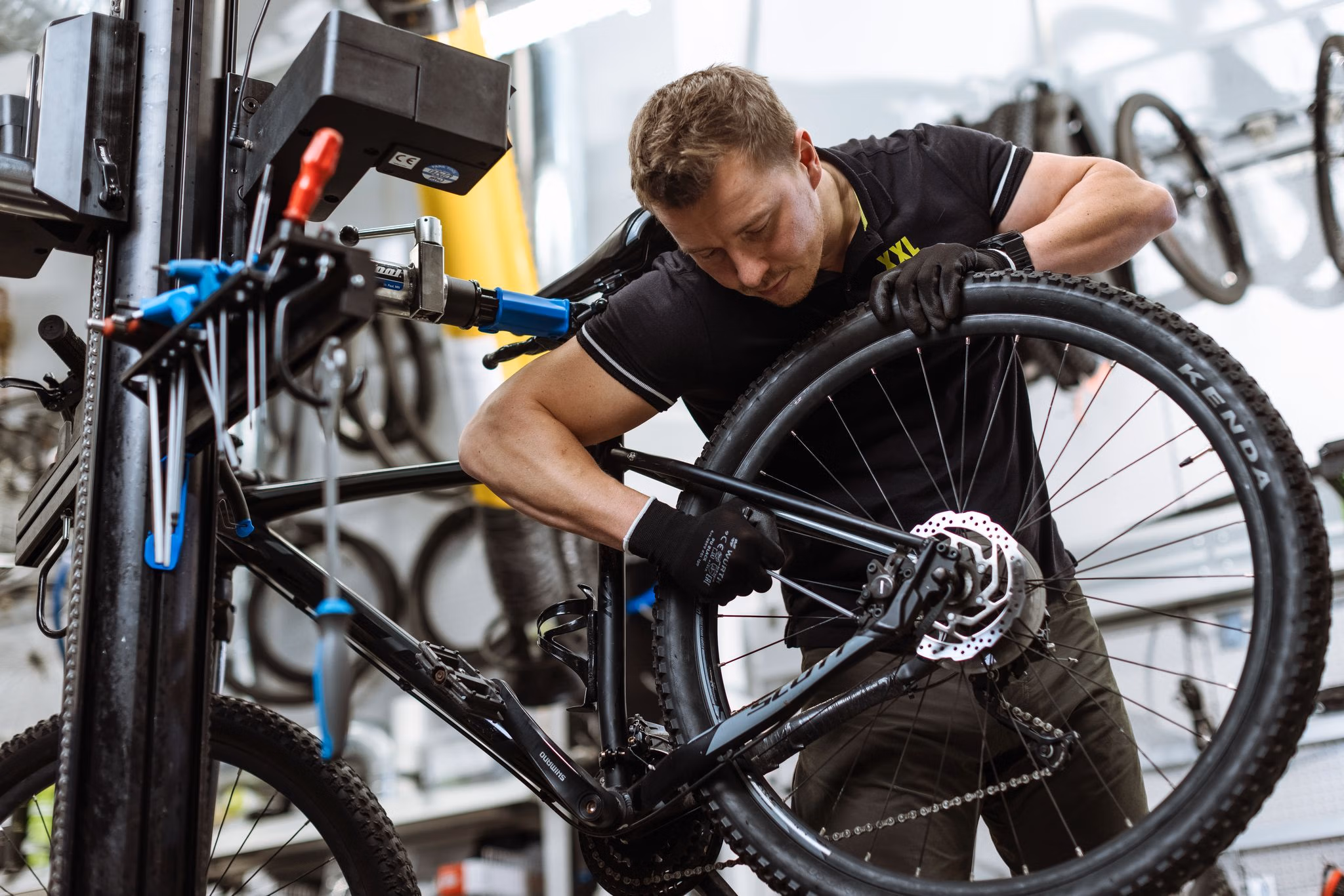 Vi vill att produkterna vi brinner för, ska hålla bra över tid. Därför kan du alltid lämna in dem på service och reparation hos oss. Nya som gamla, oavsett vart du köpt dem. Vi både slipar och vallar tillsammans med en rad andra servicetjänster när det kommer till vinteraktivitet. Och såklart har vi också service och reparation av cyklar, fortsätter Anders Lindblom, Sverigechef på XXL.