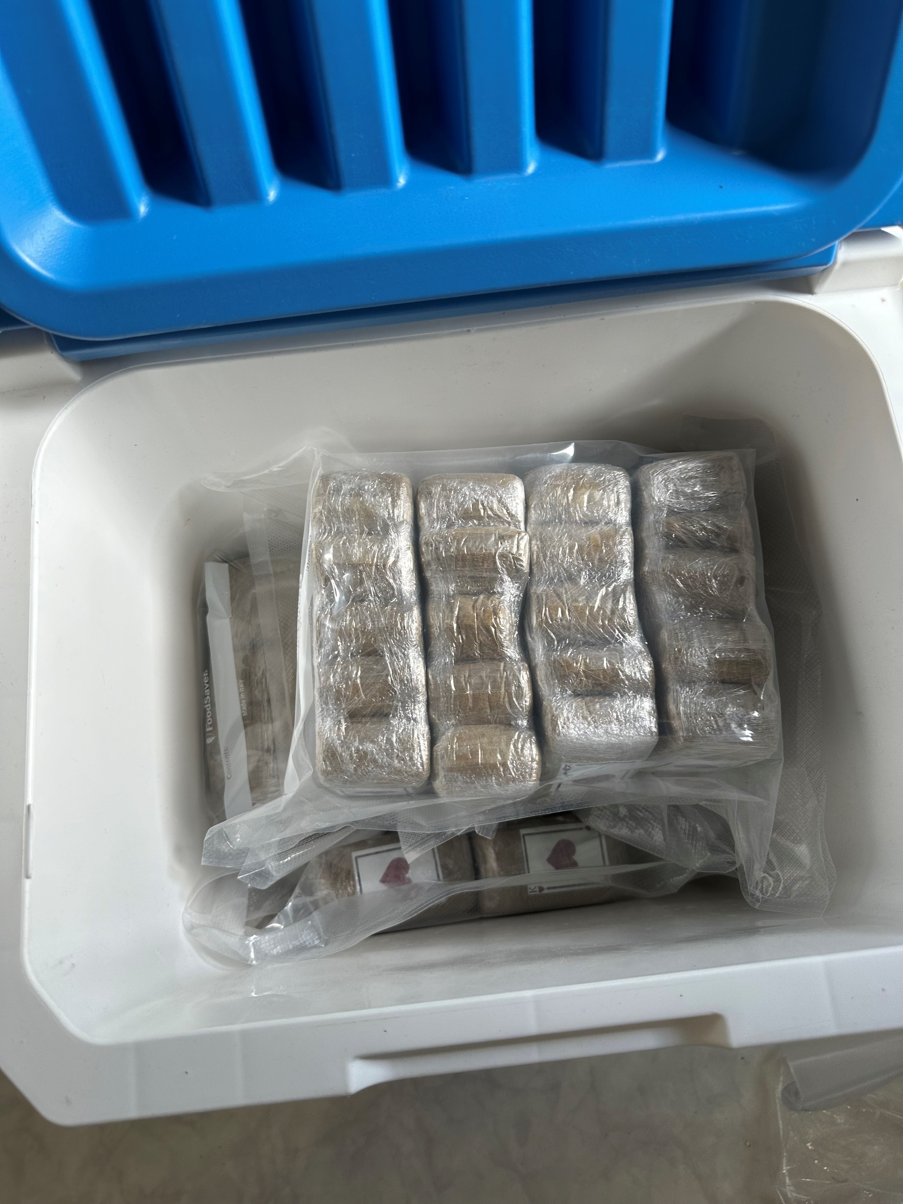 – Gympapåsen innehöll cirka två kilo cannabisharts. När vi sedan gick in i lägenheten fann vi en kylväska med resten av narkotikan, drygt 13 kilo. Vi hittade även drygt 200 gram amfetamin som förvarades i frysen, säger Miriam Monsell, utredningsgruppchef på Tullverkets kriminalenhet Nord.