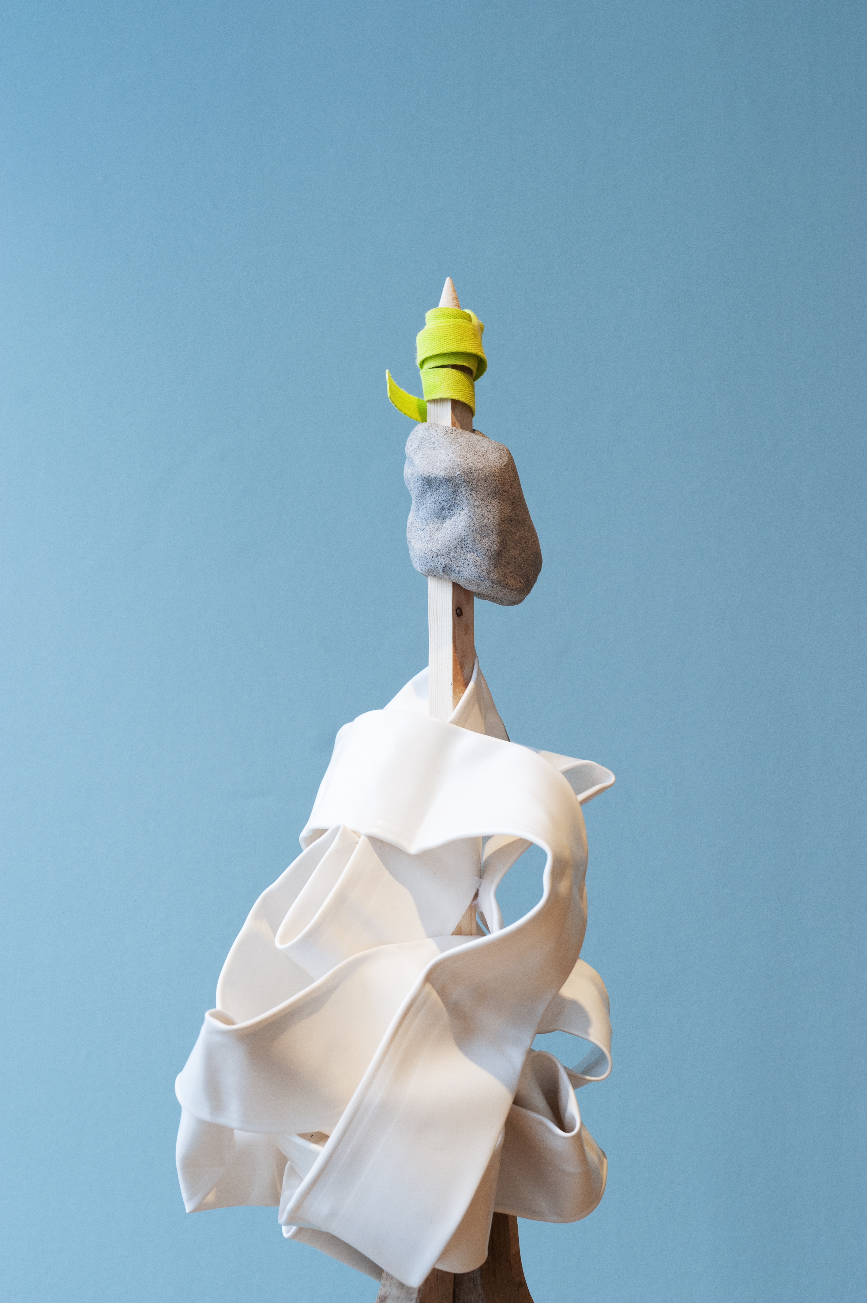 Spröda figurativa målningar och abstrakta balanserade skulpturer skapar ett landskap i brytpunkten av dröm och verklighet. Här lever synliga och osynliga världar sida vid sida och det är endast i korta ögonblick som de blottar sig för varandra. Det är ett sökande efter någon slags hemvist. Längtan efter en egen plats, där man kan hissa sin flagga och bygga sin bas. Vilka livskomponenter är det som skapar meningsfullhet - och bygger våra fundament? Vilka funktioner krävs för att ett hem ska börja kännas som hemma?